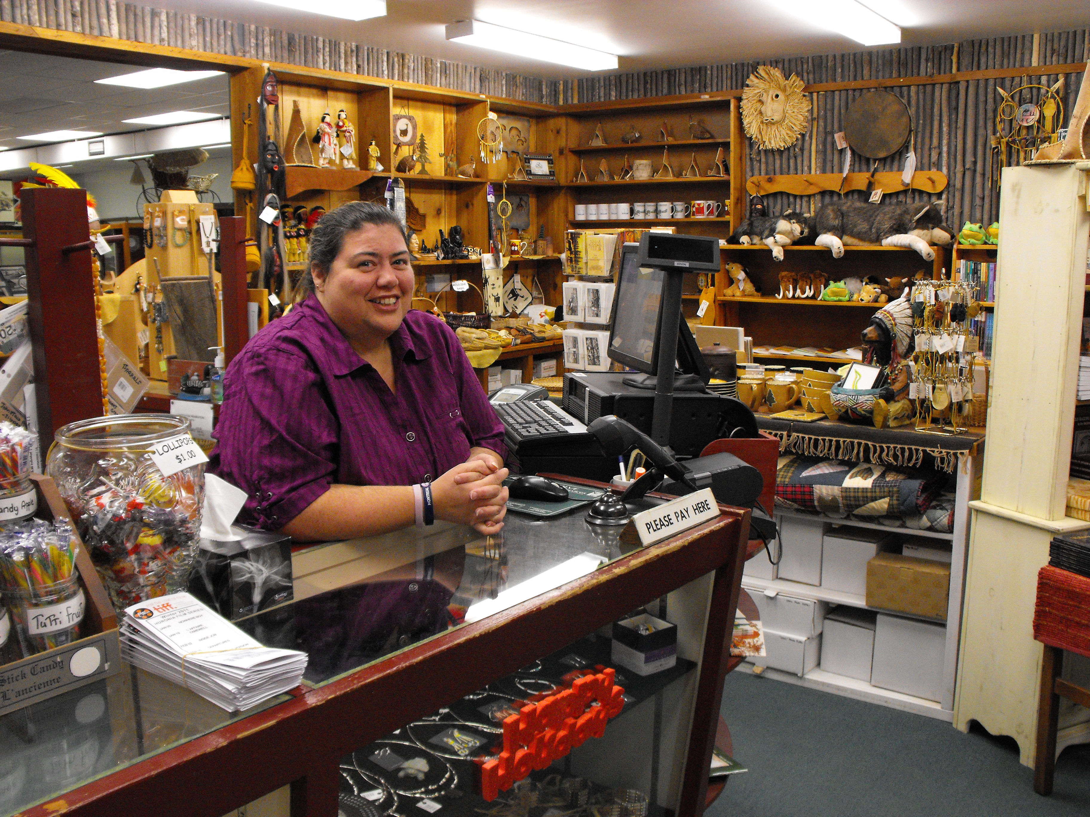The store features hundreds of items, including hand-made crafts, jewelry, blankets and artworks, as well as a wide selection of moccasins and BOOKS, BOOKS, BOOKS!