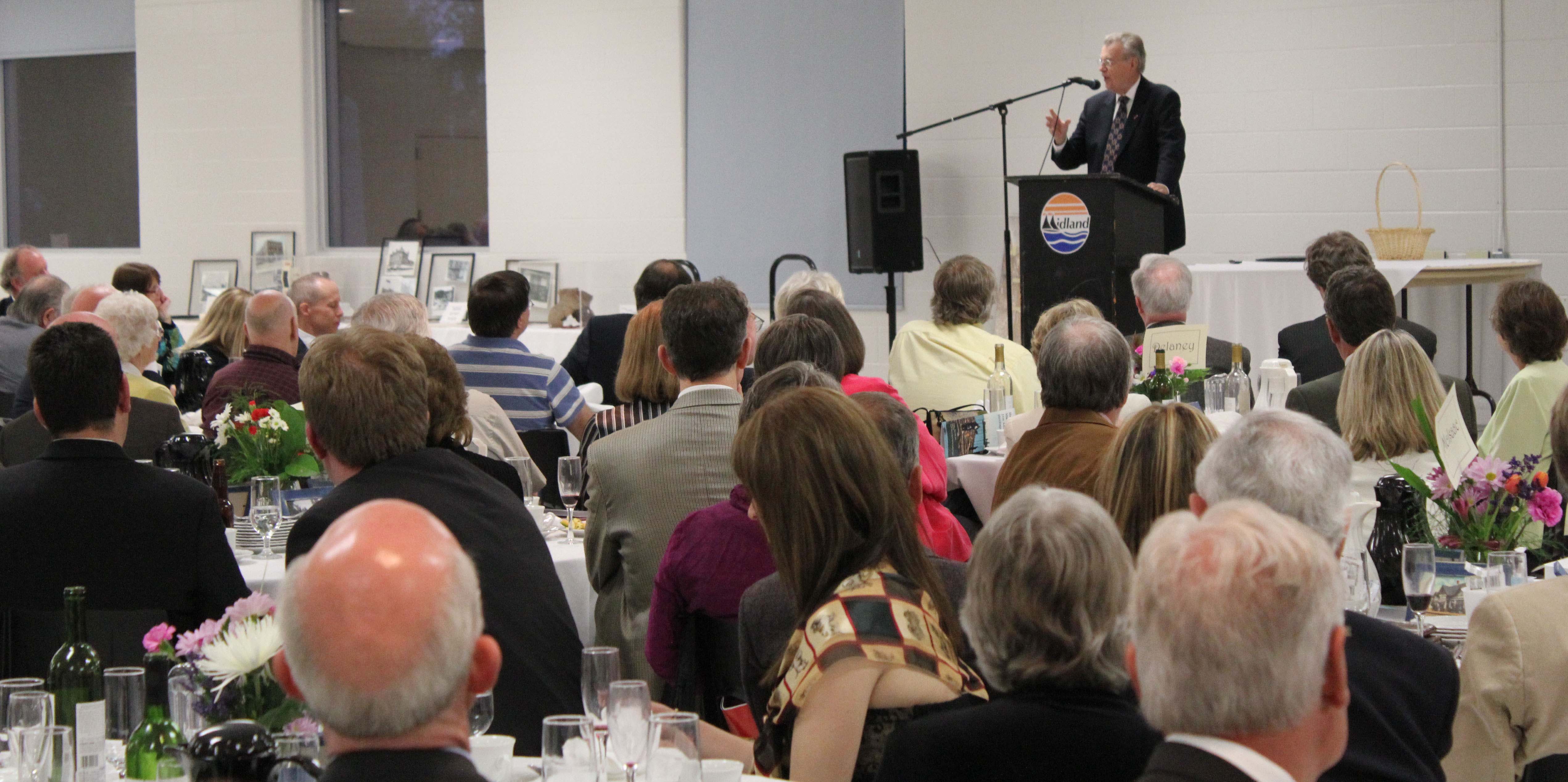 Special guest speaker Joe Martin delivers his keynote address at the Huronia Museum's Heritage Dinner.
