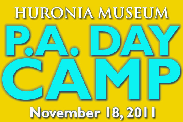 On Friday, November 18, 2011, the Huronia Museum is once again proud to be hosting PA Day Camp. The camp runs from 9:00am to 5:00pm. The cost for camp is $22 per child.