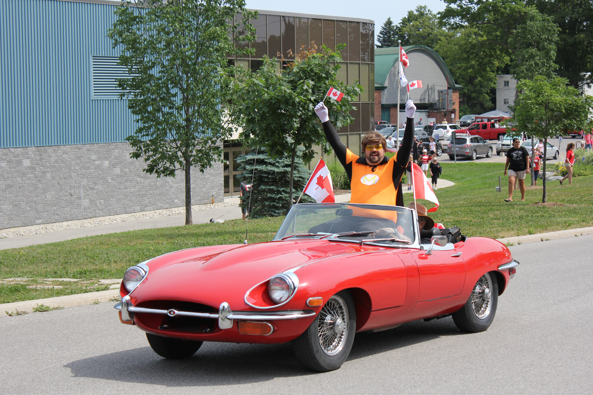 Museum Man showed his Canadian pride in the Midland Canada Day parade riding in the back of a ’69 Jaguar. Visitors to the museum were treated to a free t-shirt that they were able to tie-dye into their own unique design.
