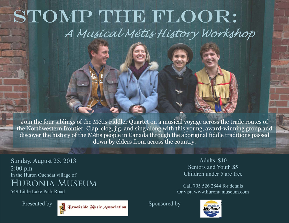 Join the four siblings of the Métis Fiddler Quartet on a musical voyage across the trade routes of the Northwestern frontier. Clap, clog, jig and sing along with this young, award-winning group and discover the history of the Métis people in Canada through the aboriginal fiddle traditions passed down by elders from across the country.