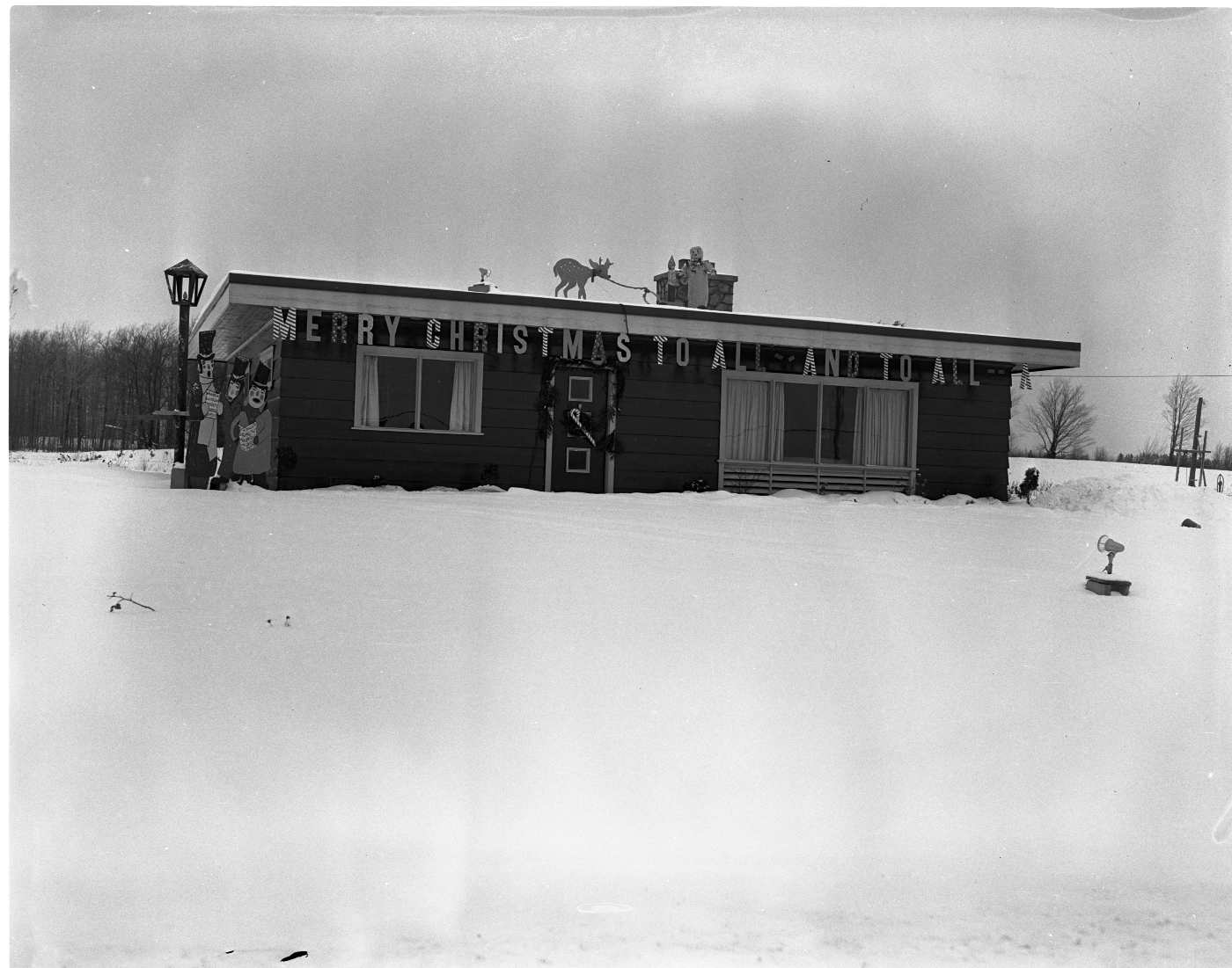 Midland Junior Chamber of Commerce hold house decorating contest and award Christmas turkeys to the top four entries. First place above is Dave & Eleanor Hudson of 374 Manly Street, second was L.R. Diver 339 William Street, third Mrs. E.L. Metherell of 385 Bay Street and fourth Mrs. William Henderson of 88 Bay Street. The bungalow shown above belongs to Mr. & Mrs. Bill Howard of Yonge Street W.