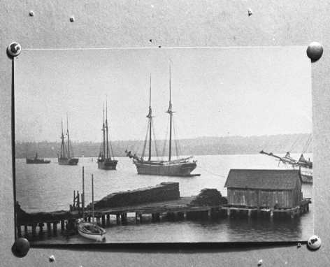 Winter layup reminds old timers of the day back in 1890 when led by the tug John Martin the schooners Groton, C.A. King, Nassau and Charger were towed into Penetang Harbour.