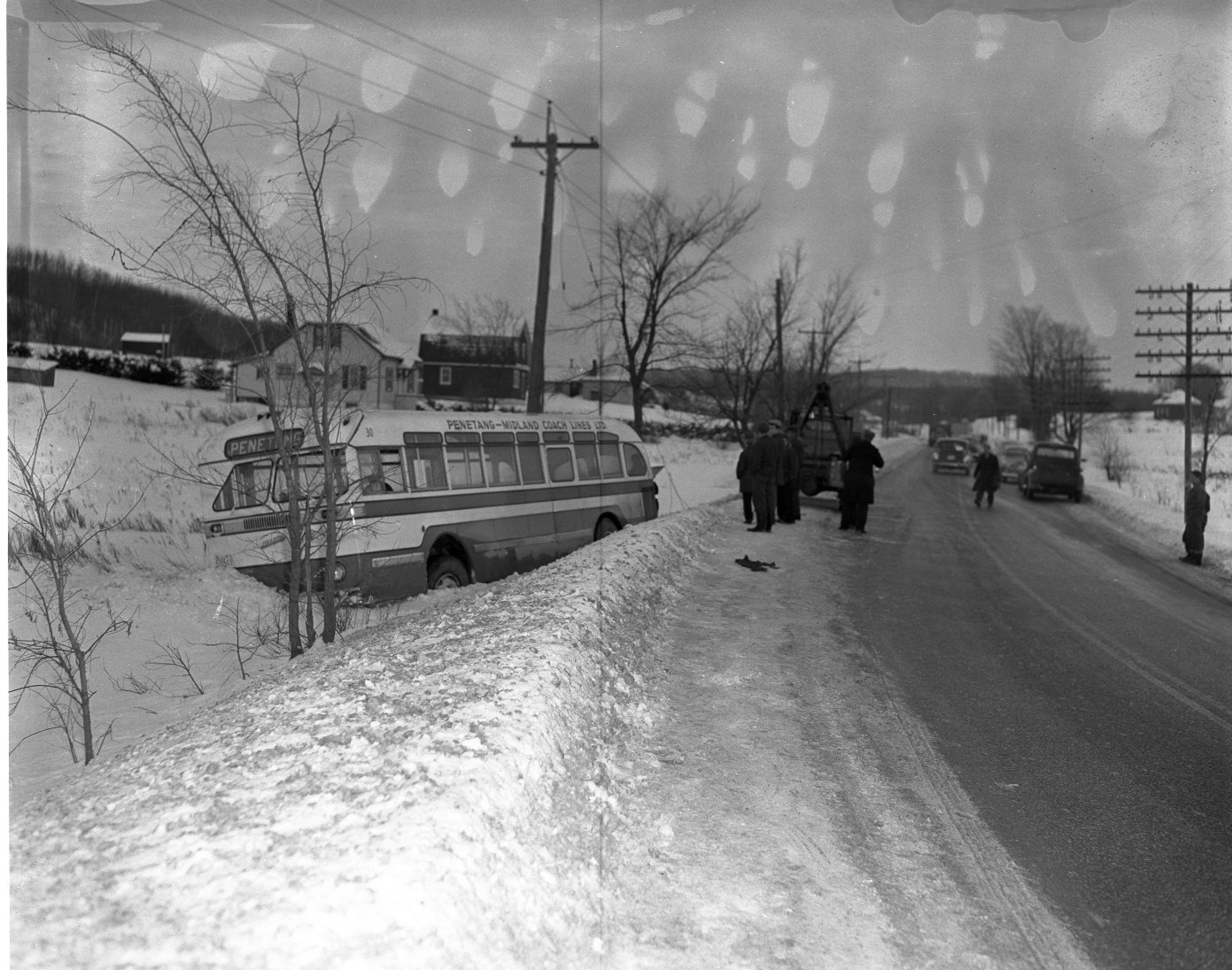 PMCL bus slides off the road; No injuries were reported among the passengers as the bus stayed upright in the ditch along Hwy 27 just south of Penetang.