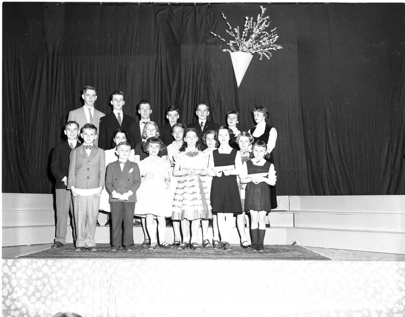From Midland and Penetang, tops in the Midland Music Festival these 19 musicians were awarded scholarships at the “Stars of the Festival” concert, March 31st. Back row; Fred Gaviller, Gary Flynn, John Arpin, Peter Bramah, Doug Setterington, Mary Popple and Doris Hyde. Front row; Keith Craig, Jim Cleaver, Jane Crawford, Andy Zgudziak, Maureen Belfry, Eleanor Boden, Elizabeth Cleaver, Eleanor Paice, Maureen Jeffery, Anne Webster, Elizabeth Cowan and Robin Ann Allsopp.