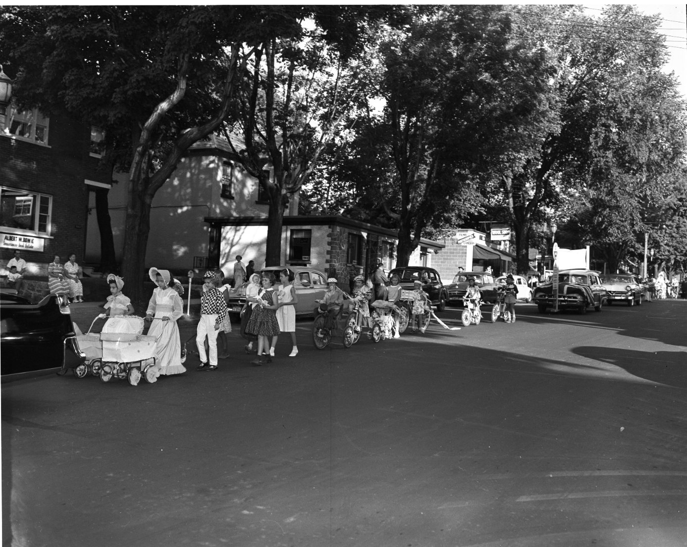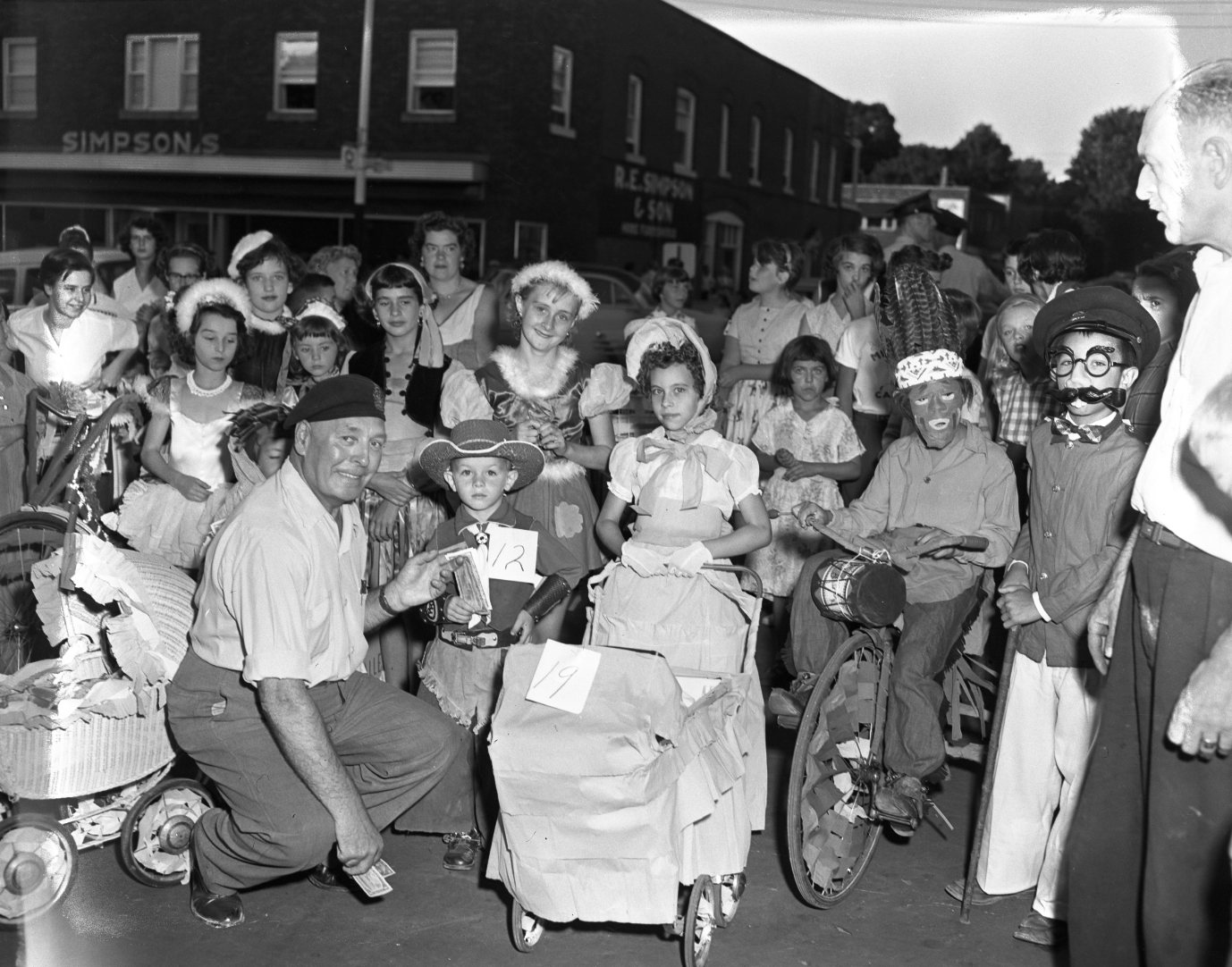 Midland Branch 80, Royal Canadian Legion carnival parade Friday night down King Street from the curling rink, hundreds of people lined the street. Midland Citizens Band and a fire truck led the parade. Judges were Mayor Charles Parker, Don Swinson, Helen Laidlaw and Miss Margaret Duffet. In this group can be seen, Carol Scott, Margaret Langevin, Karen Clark, Wayne Hamelin, Gerald Karch, Joseph Proulx, Shirley Proulx, Wendy Watering, Karen Labatt and Pamela Clark.