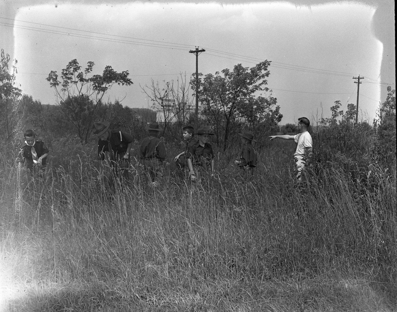 About 30 Midland Scouts helped in the search Wednesday for Gilbert Perrault, the 36 year old Midland man who has been missing since Monday night. Scouts searched the area around the CSL winter berth under the direction of Howard Deschamps while police and friends dragged the water of the nearby bay.