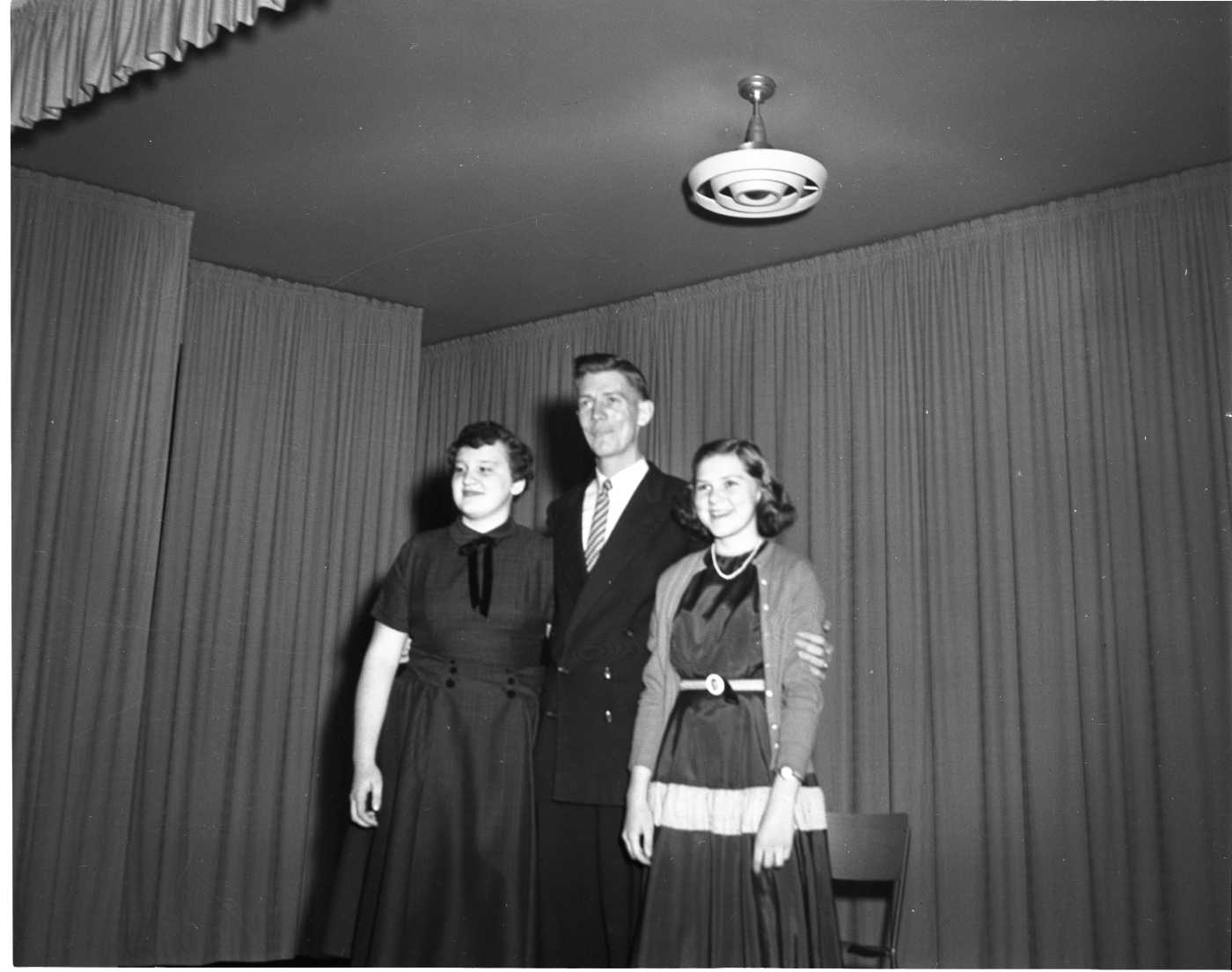 Elizabeth Holt, daughter of Mr. & Mrs. Bruce Holt and a grade eight pupil at Parkview School was the winner of the spelling bee at Regent School Monday night. The event is sponsored by the Midland Home & School Association. Pictured are Elizabeth (left) with spelling master Jack Yelland and runner up Earla McCuaig, daughter of Mr. & Mrs. E. “Red” McCuaig, a grade eight pupil at Regent School.