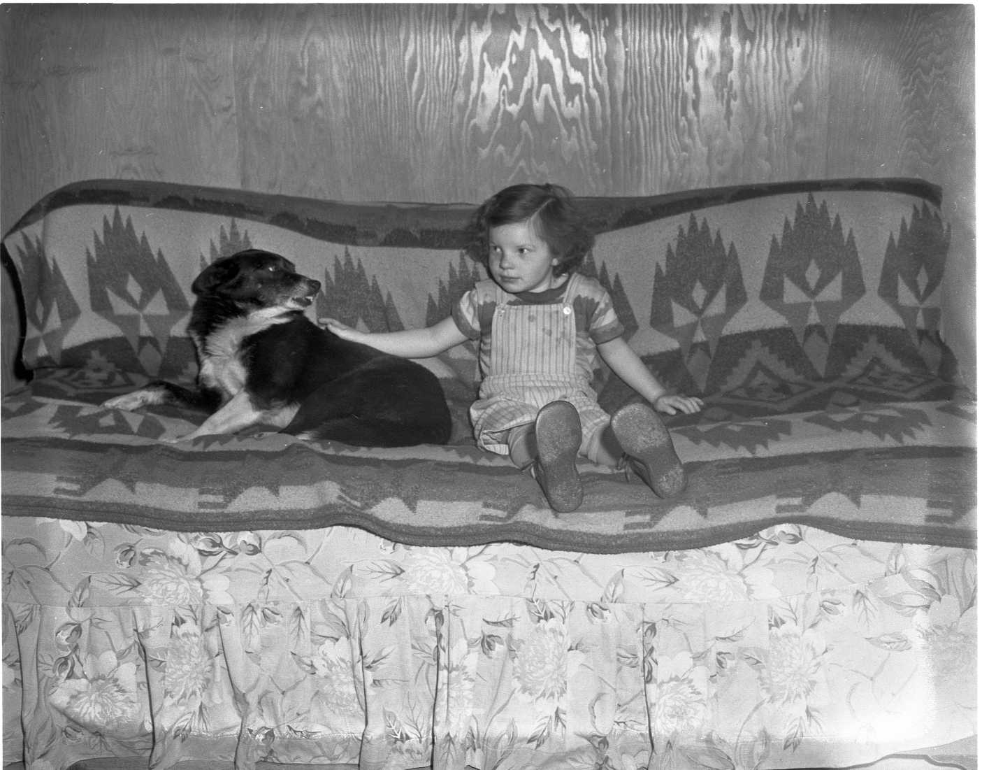Safe at home again after being found two miles from her home is Susanne Brown, 4, of Vasey, daughter of Mr. & Mrs. Newton Brown, and her dog which accompanied her. She was found by neighbour Mervin Edwards, on Concession 4, Tay.