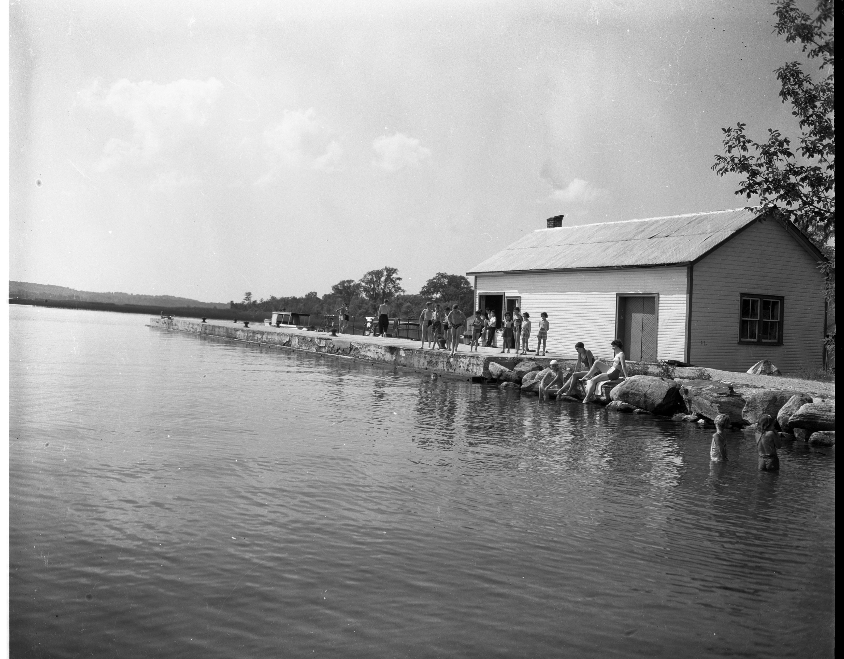 This photo appeared on the bottom right corner of the front page of the Free Press, July 4th, 1956. Unfortunately the corner was torn, taking away 90% of the caption. The heading is “Natural Science Lesson” and the only name we can make out is Clifford Ga?? A Harbour is mentioned so it could be Honey Harbour or Victoria Harbour. We pulled out the original copy of the paper and confirmed that the corner is missing.
