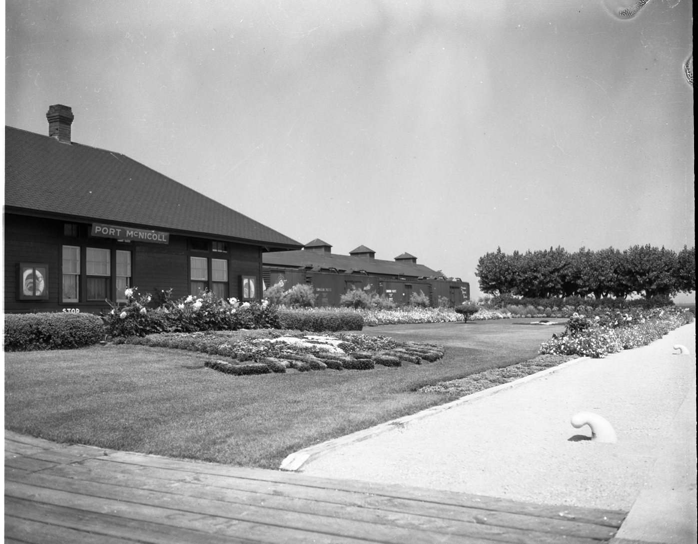 CPR summer station at Port McNicoll with the ice house in the background. For years this was one of the most photographed sites in Simcoe County, not just by the passengers but it was a popular spot to visit by locals on a family outing.