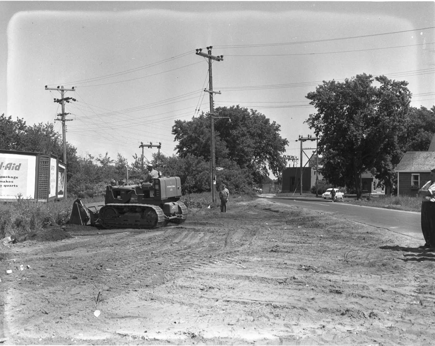 Demonstration of the sanitary land fill method of garbage disposal on a vacant Vindin Street lot, Midland. Process was being demonstrated by W. L. Ballentine Company Ltd. with a specially fitted bulldozer designed for the job. System is being used in many towns including Orillia.