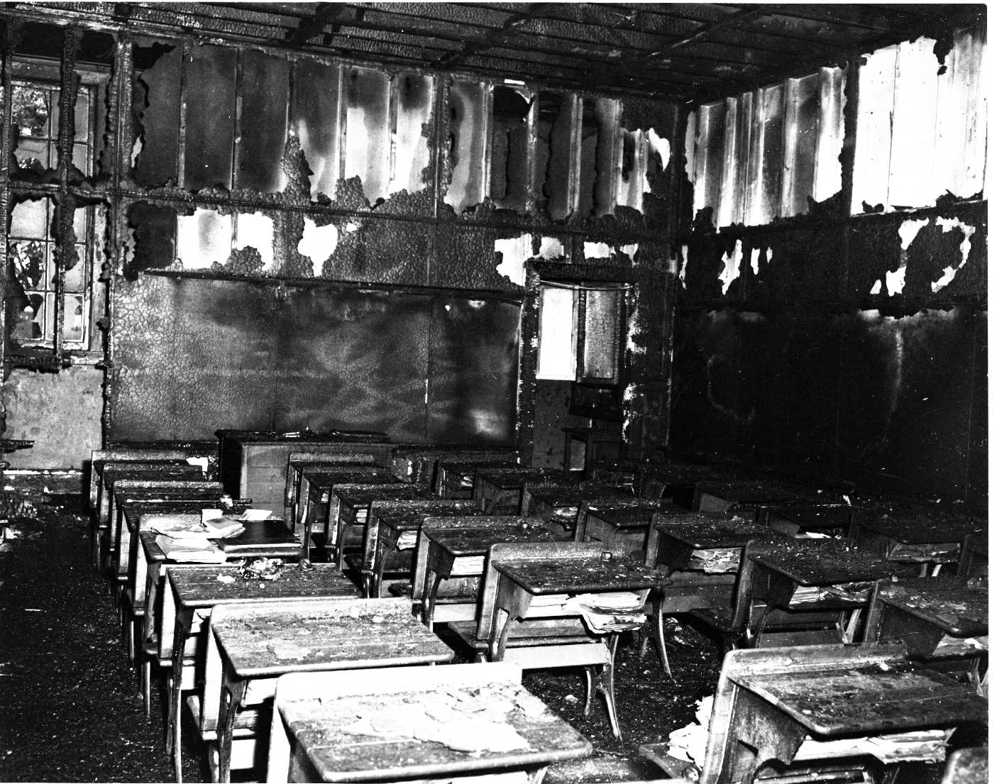 Major damage in the fire at St. Mary’s Separate School early Friday morning occurred in the class room which was occupied by grades 5 and 6. The room was completely destroyed. The students have been accommodated in surplus rooms at Parkview and Sixth Street schools. Four other class rooms were badly damaged by smoke and water.