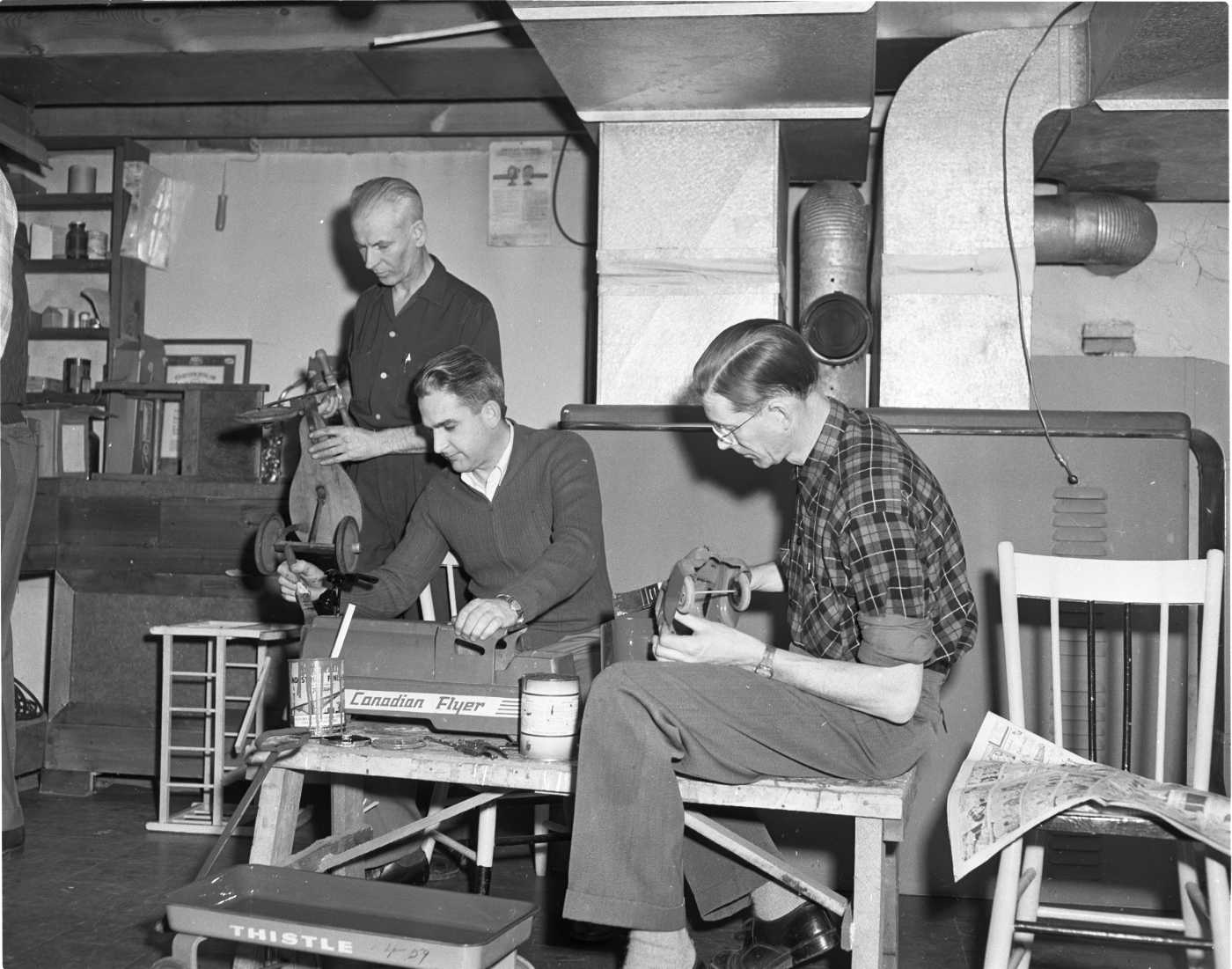 More Midland Lions repairing toys for Christmas. Jack Frame, Harold McAllen and Charlie Rutherford.