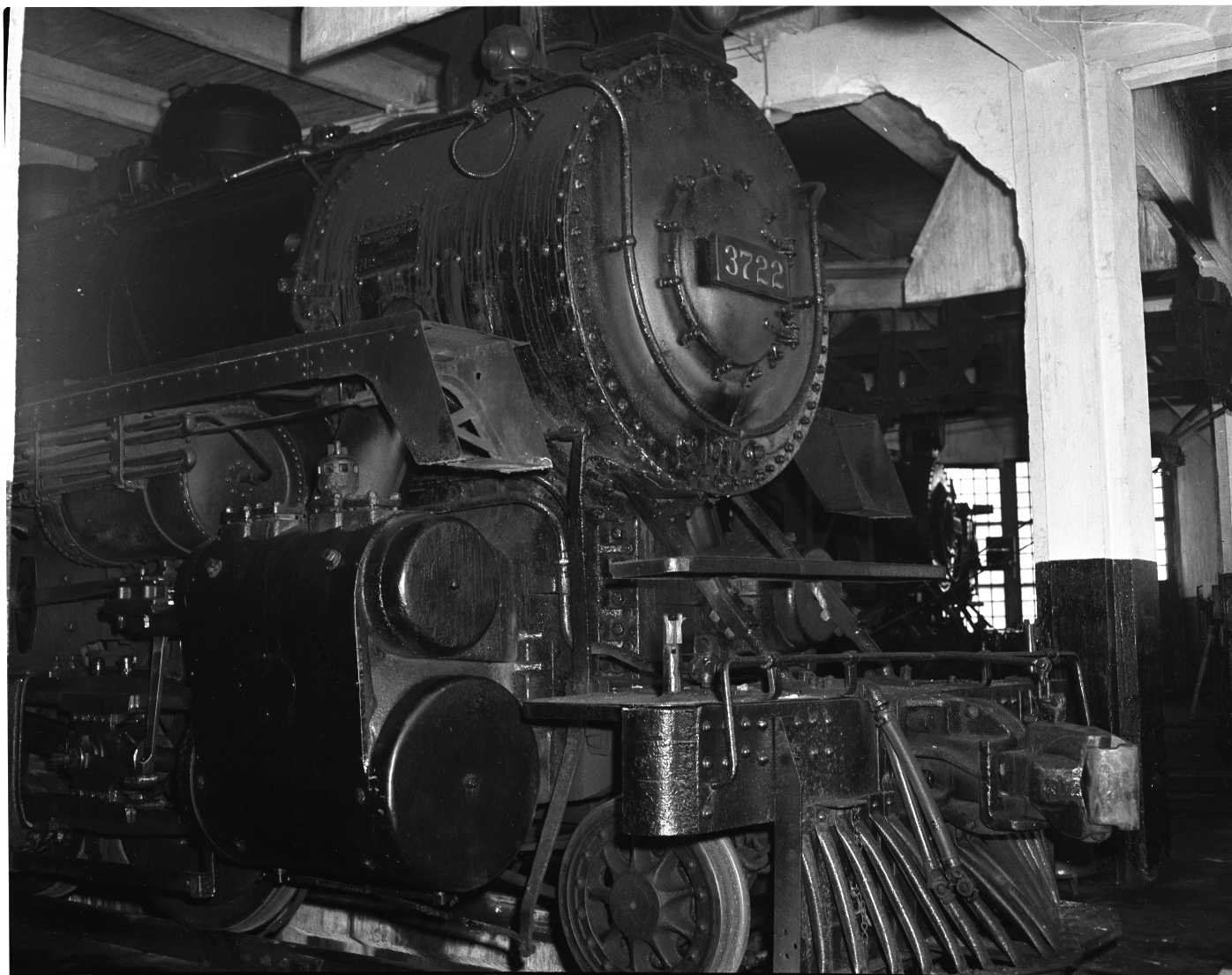 Canadian Pacific #3722, a class N2bs, 2-8-0 steam locomotive built in 1912 by the Montreal Locomotive Works. The #3722 is shown inside the roundhouse at Port McNicoll. This engine would later become the last CPR steamer to leave Port McNicoll on April 30th 1960, the final day of regular freight steam service on the CPR in Ontario. #3722 was scrapped a few months later in September of 1960. Sister engine #3632 was also operating from Port McNicoll at this time.