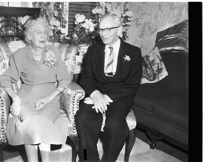 A young man from Waverley and a Huron county girl who met by chance in far-off Brandon, Man., many years ago, marked their golden wedding anniversary in Midland last Wednesday. They were Mr. and Mrs. Roy French, and the roomful of flowers in their home at 322 King Street was ample evidence of the esteem which this couple has earned over the years. In fact, all but a few months of their 50 years of wedded life has been spent in Midland. Born at Waverley Nov. 28, 1880, Roy French went to school there and worked on his late father’s farm until 1900. Then he decided to become a carpenter and spent two years learning the rudiments of this trade under the late Joseph Davenport. The “going” wage for young would-be-carpenters in the early days of the century was 12 cents per hour, for a 10-hour day. Realising his early education had been of a limited nature, the young apprentice attended the night school then in operation at the Midland YMCA. For three years, from 1902 to 1904 he studied drawing and mathematics, both of which were a big help in his later career. From carpentry, Mr. French went to Midland Engine Works, where he learned the rudiments of pattern making. In 1905 he joined the many young men who were taking Horace Greeley’s advice by heading west. He obtained a job in the Brandon Machine Works. About this time a young lady also decided to see what the west had to offer. She was Agnes Barbara McNeill, a native of Hullett Township, in northern Huron County. Eventually, Agnes and Roy met in Brandon and in the spring of 1907 were married. Back in Midland after his three years in the west, Mr. French found employment in the foundry department of the Canada Iron Corporation, where he remained until 1913, at which time the smelter shut down. Then followed a brief period with the Benson and Bray firm. But with the outbreak of World War I, Mr. French found himself back with his old employers Midland Engine Works. They were making 6-inch shells at the works and Mr. French started off as an inspector. Later he became the night foreman and eventually general foreman of the No. 1 plant. After the war, Mr. French moved around the bay to Sunnyside, to the Great Lakes Foundry and Machine Shop, operated by W. W. Nicholson. He remained with Mr. Nicholson until the latter’s death in 1937. In the spring of 1938, Mr. French took over the Nicholson business, which has carried on ever since under the name of Great Lakes Boat and Machine Co. Up until five years ago, Mr. and Mrs. French lived at 17 Ottawa Street. They have resided at 322 King Street since that time. Mr. French is perhaps best known in Midland through his connection with Calvary Baptist Church. A member of the church since 1903, he has subsequently served on the board of deacons for more than 40 years, and for more than a quarter century was the superintendent of the Sunday School. Mr. French’s long service to Calvary was fittingly marked a year or so ago when the new addition to the church was officially opened. Although he served for two years as an alderman during the hard times of the early 30’s, Mr. French has never taken too keen an interest in party politics. “I have been guilty of voting for either party upon occasion,” Mr. French admitted. He admitted, too, that he was very fond of sport In his younger days, particularly baseball. He played on a number of teams back in the days when Town Park was a busy place all through the summer, with numerous “town league” clubs In action. Mr. and Mrs. French have one son, Alden, manager of Great Lakes Boat and Machine Co. Ltd. and two daughters, Mrs. J. E. Ayers (Florence), of Windsor, and Helen, a graduate of St. Andrews Hospital who takes and active part in the family business. There are also one granddaughter and six grandsons.