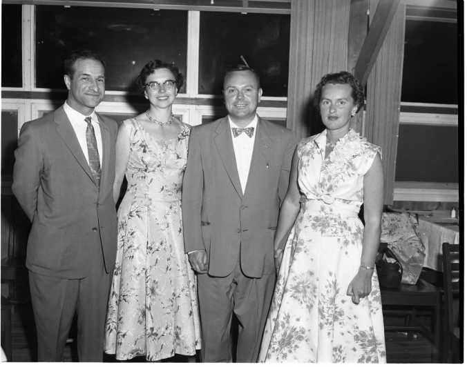 Just about the happiest bunch of fellows in Ontario at the moment are the members of Port McNicoll’s volunteer fire brigade. Some of them, with Chief Lloyd Cameron in front, are seen grouped around their brand new fire truck, which arrived Saturday. Still, others are seen on the old 1919-model engine purchased from Toronto Fire Department in 1950. Along with the new $17,500.00 truck, the brigade also has the latest type resuscitator.