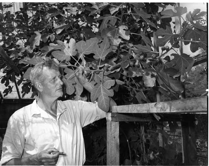 Maybe Adam and Eve weren’t too badly dressed, after all, judging by the size of the leaves on this fig tree in Ed Fox’s Midland greenhouse. A cluster of the pear-shaped fruit can also be seen on one of the branches. The tree will bear three crops this season, rather than the normal two, Mr. Fox said.