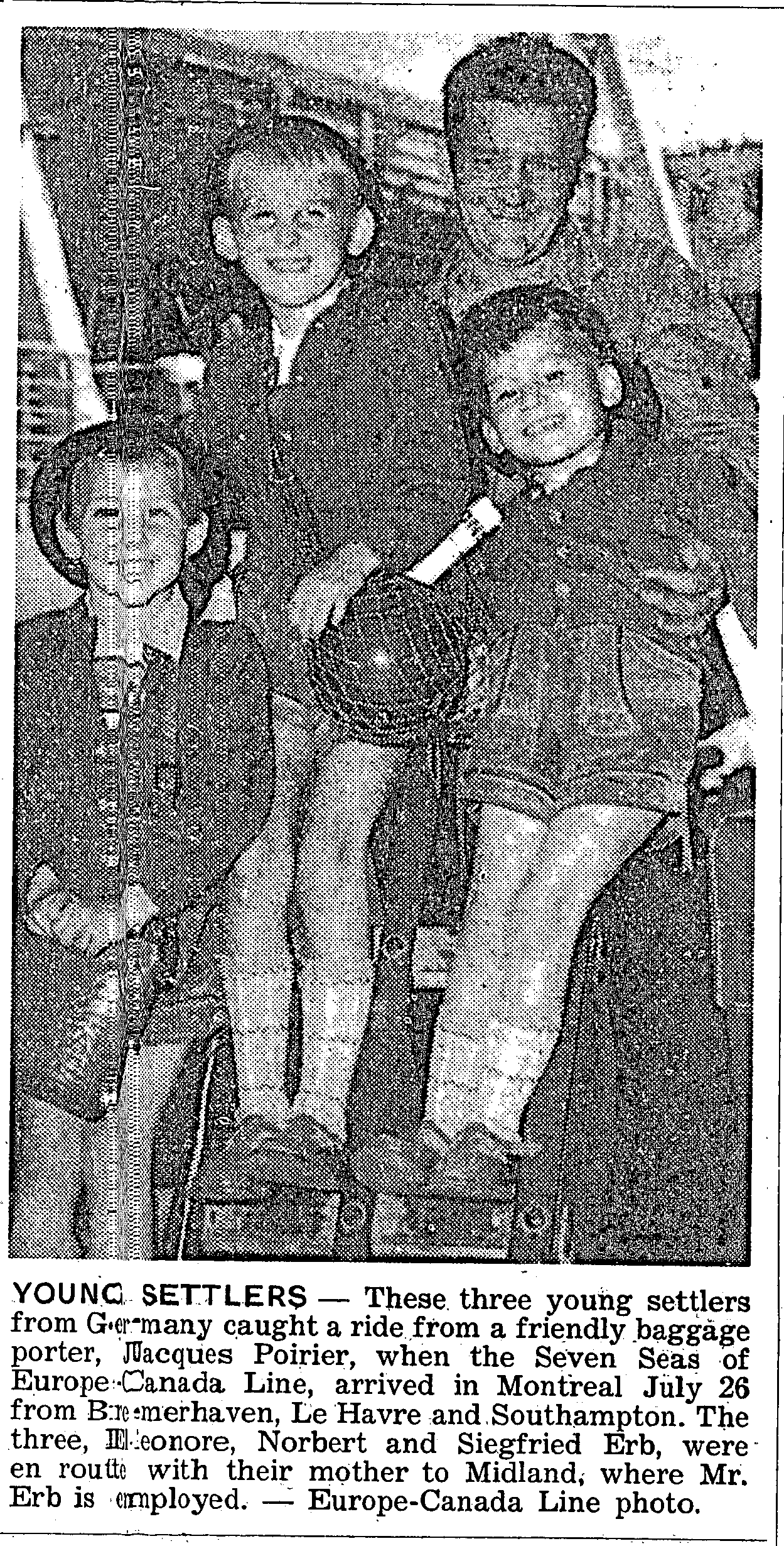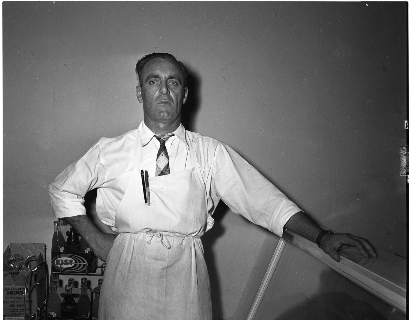 - A fondness of one’s home town often leads a fellow into some strange paths, in order to remain there. A good example of this is Fred Lemieux, who recently purchased Bowman’s meat market and groceteria on King Street. Born and raised here, Fred Lemieux is no stranger to Midlanders of several generations standing. But a lot of old timers rubbed their eyes and wondered perhaps if they weren’t seeing things when they first saw Fred in the grocer’s traditional white apron. Mr. Lemieux has had a number of jobs during his long career in Midland, but none of them remotely connected with the meat and grocery business. “But there are no openings in that trade in Midland right now, but my home has always been in Midland and I had no desire for a change. That’s why I decided to take a chance and purchase this business,” Son of the late Mr; and Mrs. Felix Lemieux, Fred spent eight seasons on the Great Lakes boats after he finished school. Then followed 19 years with Century Coal Co. He was assistant to superintendent Cecil Dunn when he left that firm last November, a position he had held for six years. From Century Coal, Fred went to the Dorr, Oliver, Long Co. in Orillia, manufacturers of mining machinery. But the long trip to Orillia and back each day wasn’t to his liking. Next step was to purchase the meat market and groceteria which had been operated by Bill Bowman for the past three years. As veteran Midlanders well know, there has been a Bowman in the meat and grocery business in Midland for close to a half century, and the name is still carried on in a shop on Yonge Street. And Fred’s aunt, Mrs. W. J. Bowman, still owns the building which houses his store. Free delivery will be one of the features of the service we hope to offer our customers,” Mr. Lemieux told this paper last week. The store will continue to deal in fresh meats, vegetables, fruits and groceries of all kinds. Two veteran employees will remain with the new firm. They are Ed Carruthers, head butcher, and Daniel L. McKendry, who has spent a lifetime in such stores as Preston’s, Bowman’s and others. Also associated with Mr. Lemieux in his new venture are his son Rica and daughter Marion.