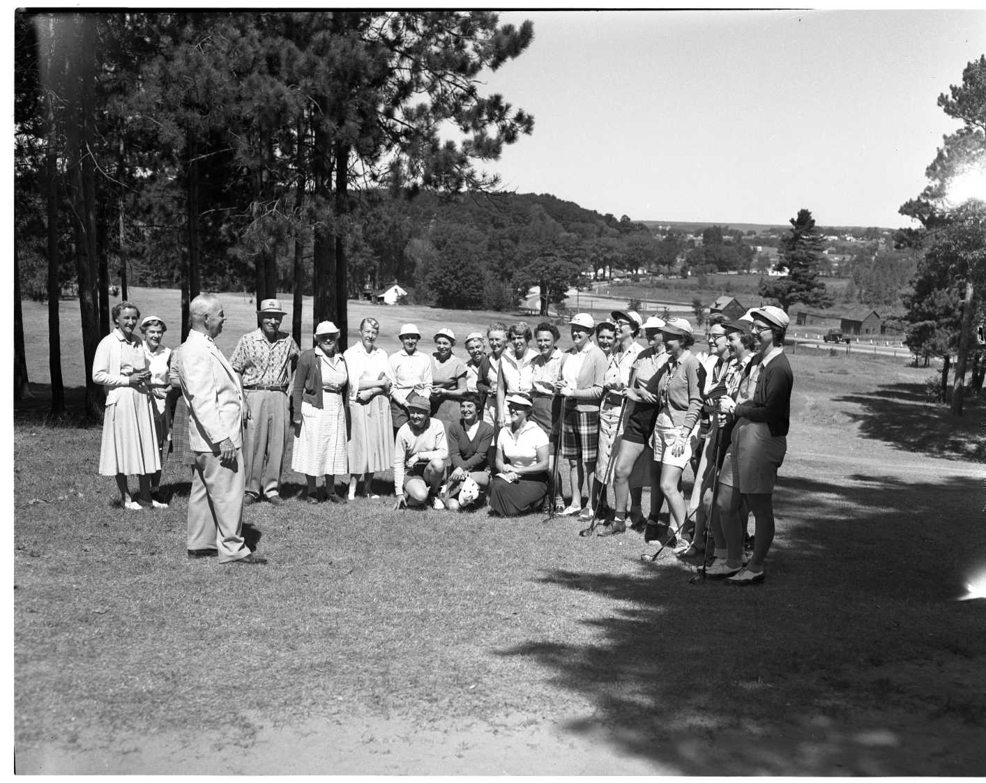 Midland hosts Simcoe County women’s golf championship at Midland Golf and Country Club. President of the club, George Ross, is seen welcoming some of the 48 golfers from Orillia, Collingwood and Barrie to the annual three-day event.