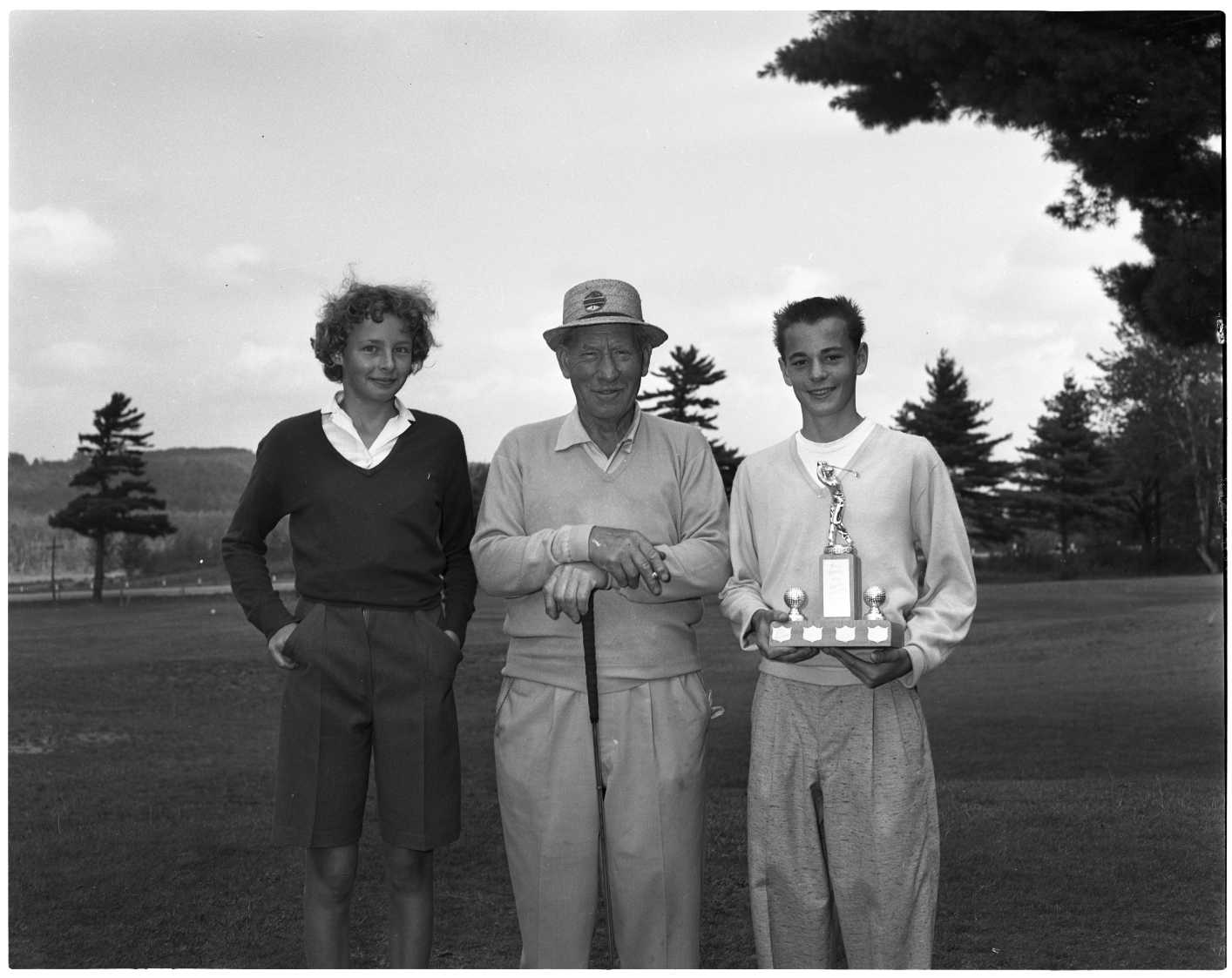 The Midland Golf & Country Club held their annual juniors competition Saturday. Susan Swan, daughter of Dr. and Mrs. D. C. Swan emerged as the top girl with David Bertram taking home the Gordon Moss trophy for boys, for the third year in a row. Happy with the results is club pro Mark Sandow, center, who has operated a junior clinic at the club for several seasons.