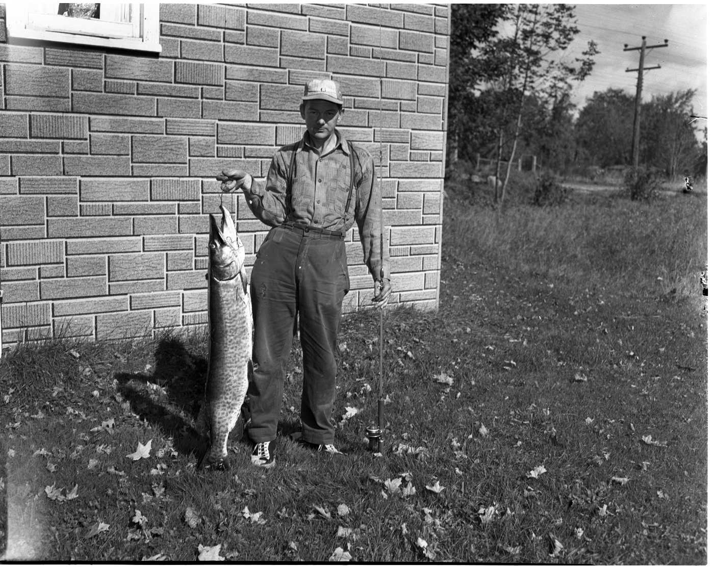 They may catch bigger muskies than this 25 1/2 pounder proudly displayed by Jack “Bud” Todd of Victoria Harbour. Not many anglers, however, will manage to land a fish of this size on an 8-lb test line as “Bud” did last Monday evening. He was out fishing trout with Bill Edmonston when the 44-inch lunge took his artificial lure in Sturgeon Bay. It took the two men some 45 minutes to land their prize.