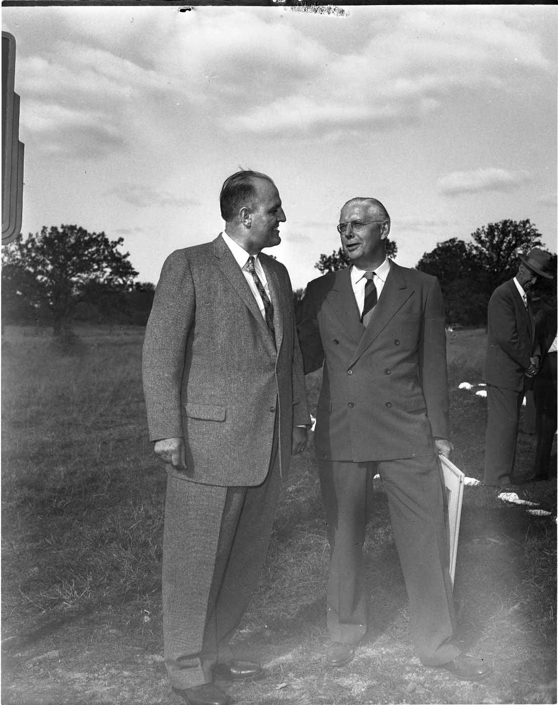 Premier Leslie M. Frost unveiled this marker on the site of Cowan’s trading post at Matchedash Bay in Tay Township [now Severn Twp] on Friday. The plaque was erected by the Ontario Archaeological and Historic Sites Board and the Huronia Historic Sites and Tourist Association played host to the event attended by more than 200 people.