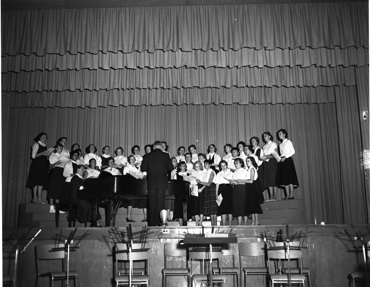 MPDHS Glee Club opened the program at the graduation exercises of MPDHS Friday night. The girls’ choir of the club presents a selection under the direction of R. C. Ireland, accompanied by Mrs. Spence Richardson.