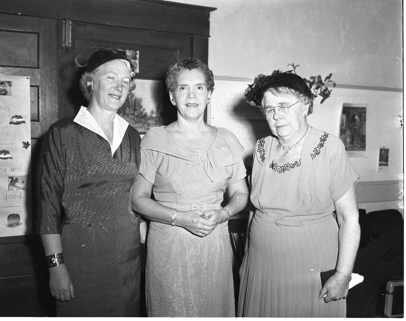 Guest speaker at a joint banquet held at Coldwater United Church last week by North Simcoe branches of the Women’s Institute was Mrs. Wanda Miller, mayor of Gravenhurst and a W.I. past president. With her are Mrs. Lloyd Dunlop, left, and Mrs. Blanche Durnford of North River. Mrs. Durnford who was district president in 1938 has been a member of the North River branch since World War 1 days.