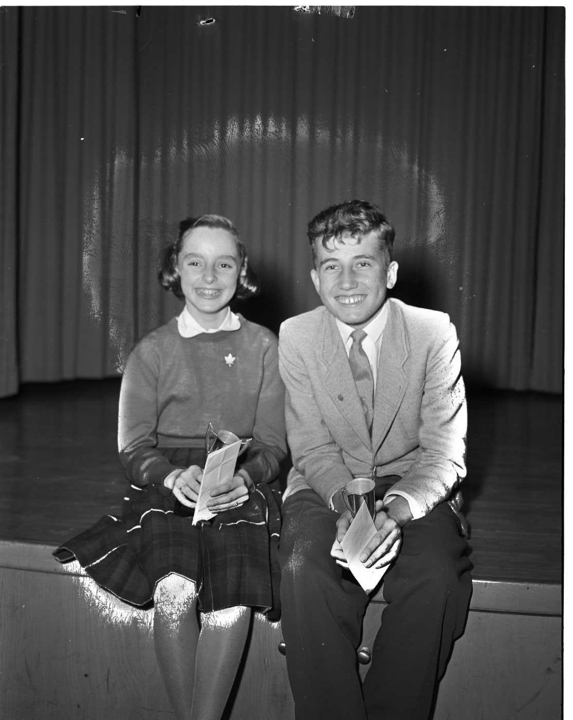 Winners of the public speaking contest for Midland elementary schools Friday night were Marie McLaughlin of Sacred Heart School and Dietmar Wagner of Regent School.