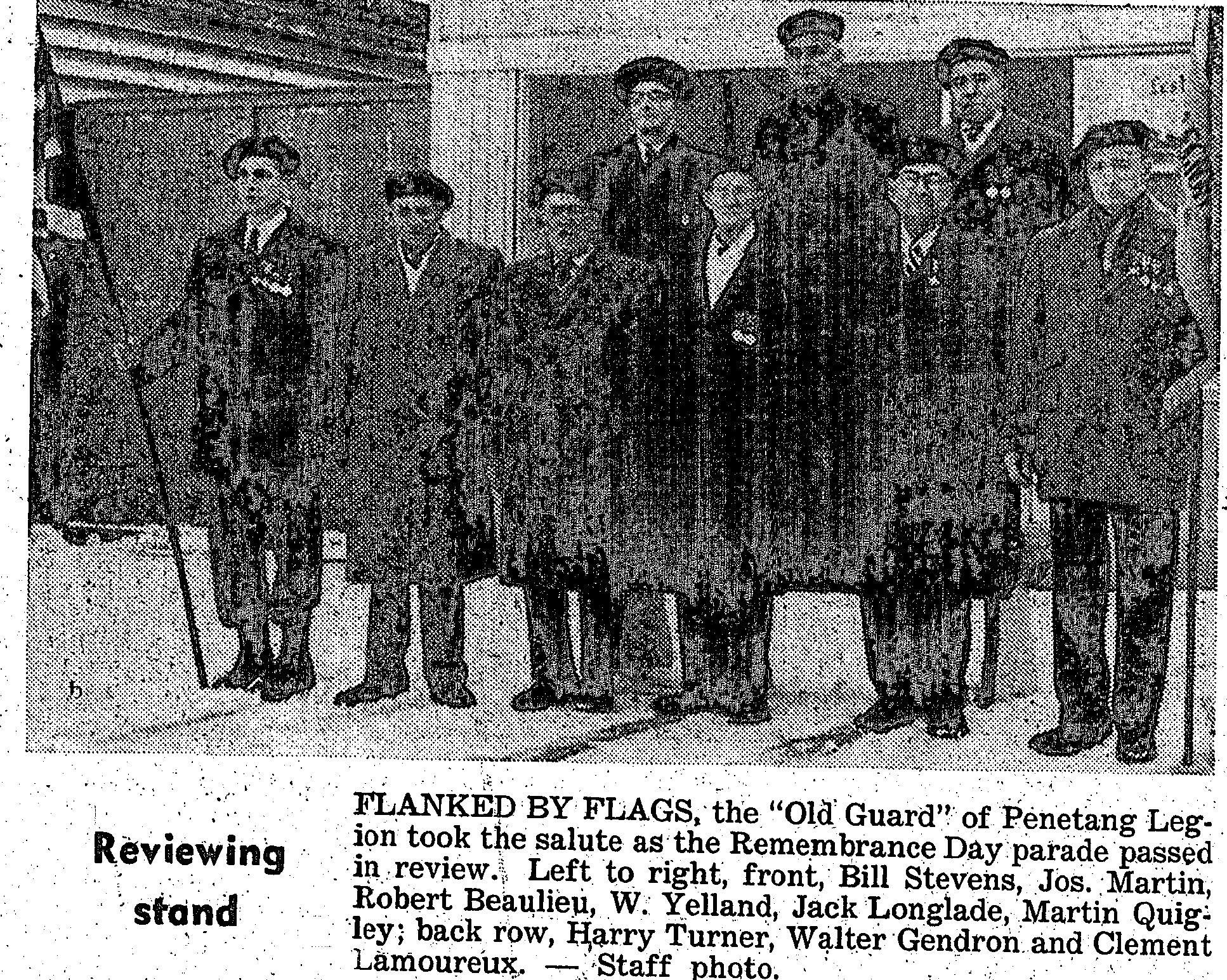 - Obituary – Funeral rites for Mrs. H. Lavigne were held in St. Mary’s Church, Kitchener, Nov. 6. Born and raised in Penetang, she was the daughter of the late Gasper and Sopherine Bellehumeur. The solemn requiem funeral mass was celebrated by, her son, Rev. Norbert Lavigne, assisted by Rev. D. Kirwan and Rev. B. Murphy. Rev. W. Lalonde acted as master of ceremonies and Rev. A. Mayer preached the sermon. In the sanctuary were a large number of priests, all members of the Congregation of the Resurrection. Pallbearers were the other six sons of Mrs. Lavigne: Romeo, Anthony, Gerhard, Allan, John and Paul. Surviving is her husband, seven sons and three daughters: Iola Marguerite (Mrs. H. Klug) and Sister Denise Marguerite (Leona) now residing in Midnapore, Alta. who was unable to be present. In attendance at the funeral were many friends from Kitchener, where Mrs. Lavigne had made her home for the past 30 years. Represented also were the Catholic Women’s League and the Christian Mother’s Society, in both of which Mrs. Lavigne had been an active member.