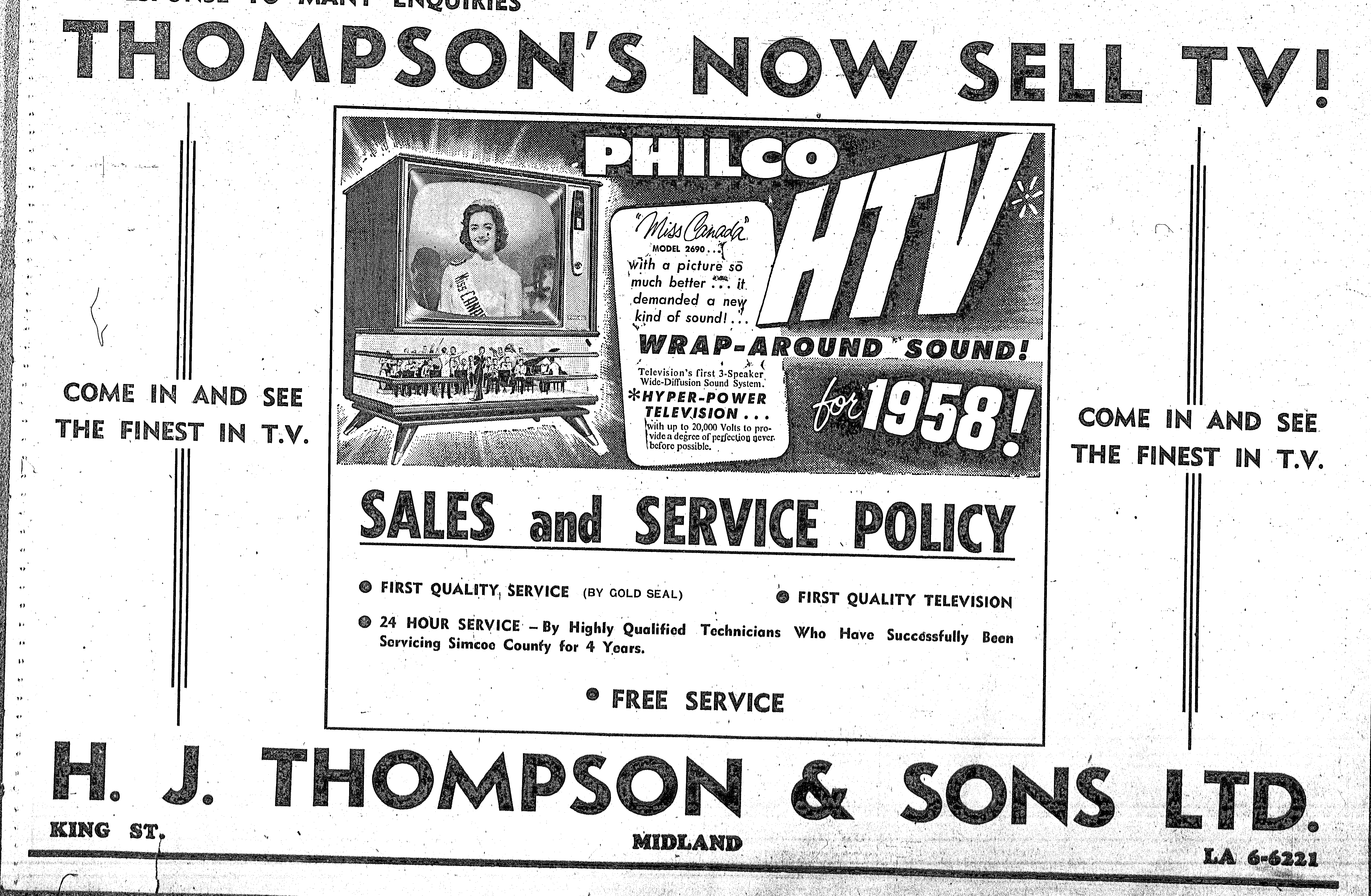 - B. STRICKLAND Realestate Ad – $1,000 down, $35 monthly, a real bargain: 3 bedrooms, insul-brick, insulated, with big garage. East.* * * $3,000 down and $50 monthly: a really big brick home; 5 rooms plus modern 4-pc. bath upstairs, 4 rooms incl. 25′ living room down, rads. East. * * * That $700 bargain on Olive St. has been snapped up, but we have 37 other homes for you to choose from! * * * $7,500 full price (easy terms): Queen St.; brick, 7 rooms, insulated, 3-wire SVC, garage. * * * Pictures and complete descriptions of these houses and many more may be seen 24 hours-a-day, 7 days-a-week, in our glass display cases at the old Capitol Theatre, King St. – STRICKLAND in Penetang, $500 down, and $35 monthly (Or what do you offer ?) gives immediate possession, 3 bedrooms; big living room, tub and WC, well wired, Robert St. * * * $1,000 down, $45 monthly: ,2 bedrooms, hardwood, heavy wiring, 3-pc. bath, Alexandra Cres. * * * $1,000 down, $70 monthly: 8 room house on Wolfe St.; buy now—rent out 3 or 4 rooms and let it pay for itself!