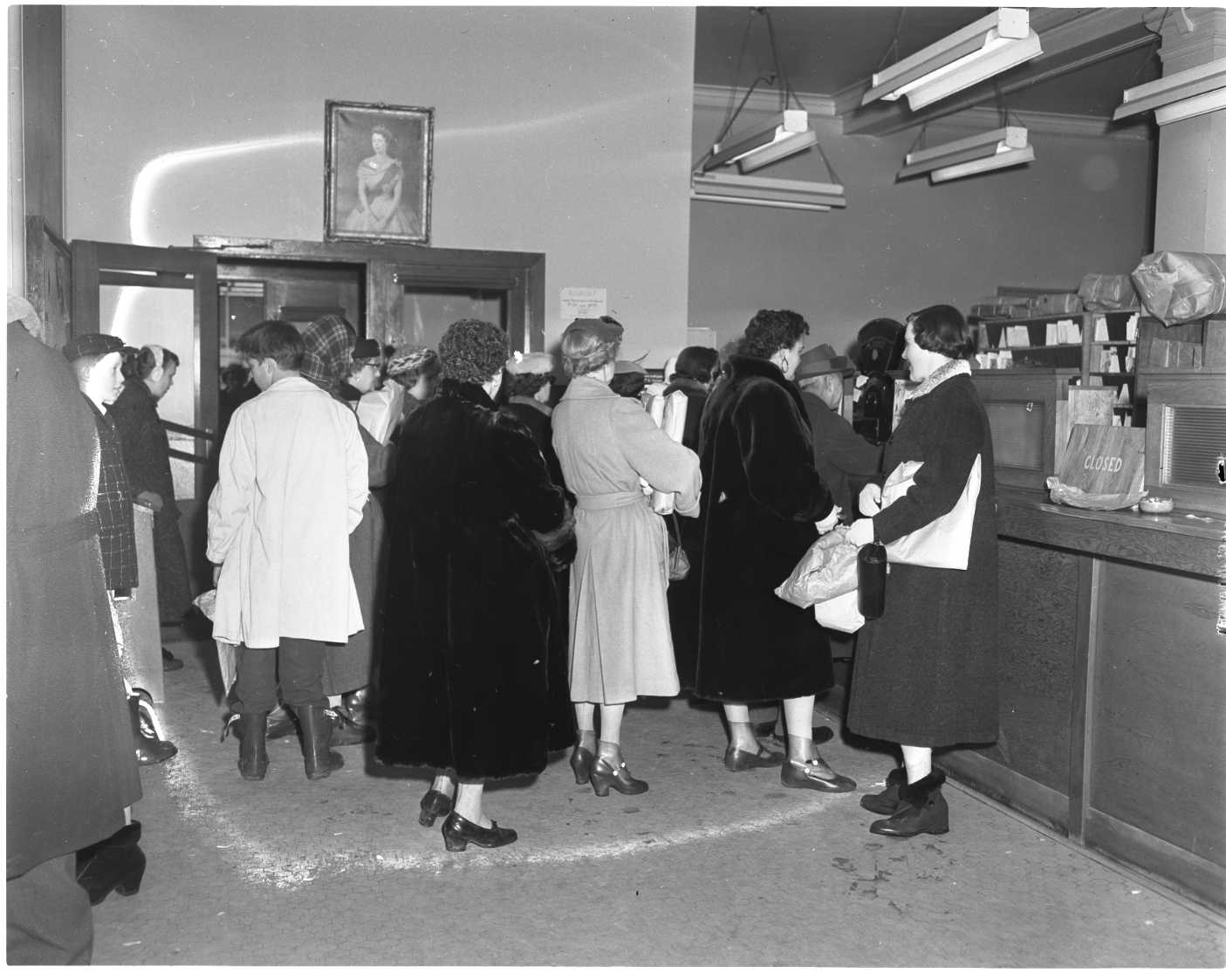 Post-Master W. F. Bourrie considered this line up a lull in the crowds that have been jamming the wickets at Midland’s post office all week.