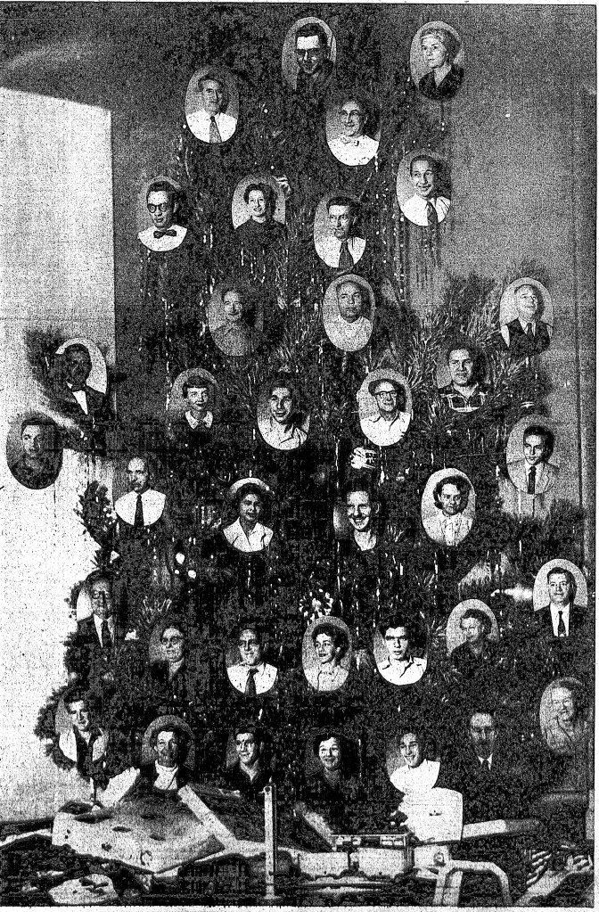 - The Free Press Herald headline December 23, 1957; Merry Christmas from the Management and Staff of Midland Printers Ltd. Photo of Staff From Left to Right — 1st Row: Bob Chittick, Charlotte McGrattan; 2nd Row: Wils Harrison, Jim Lennox; 3rd Row: Ab Cripps, Florence Ladouceur, George Garraway, Bill Murray; 4th Row: Charles Goodfellow, Ken Somers; 5th Row: Vern Farrow, Marilyn Rumney, Charles Scott, Stan Brooks, Bill Murphy, Frank VanStone; 6th Row: Clare Holden, Finlay Macnab, Lillian Rutherford, John Silvey, Vivian Cadieux, Barry Conn Hughes; 7th Row: Bill Sharper, Alma Woods, Charles Palmer, Viola Leroux, Kees Hordyk, Florence Morrison, Harry Brown; 8th Row: Serge Jeannotte, Marie Leclair, Phil Adamson, Frances Leclair, Lawrence Todd, Lorne Letherby, Dorothy Evans.