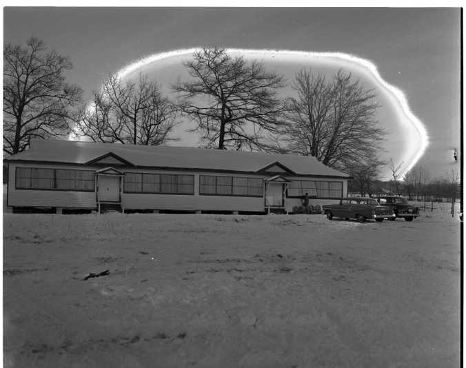 We have posted this picture in the past but it needs another look. The view is to the NE from the slope of the Midland Ski Resort west of Midland. At the foot of the hill are the old and new ski chalets. Hidden in the tree line can be seen highway 27 to Penetang and beyond the Simcoe Elevator on the left and the Dominion Ave. water tower to the right. The property along the tree line will become the site of the Mountainview Mall.