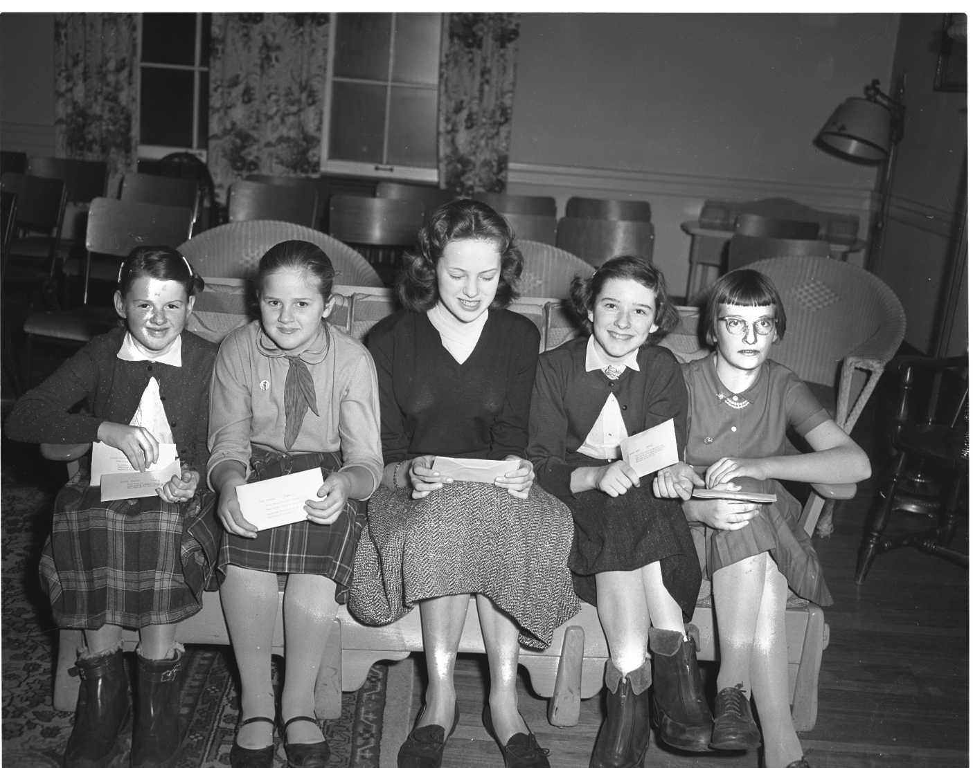 These five girls were among the prize winners in the temperance poster contest sponsored by the WCTU in Ontario schools as part of its scientific temperance instruction. Left to right are Marilyn Nicholson, whose poster was the best in the county as well as locally in Grade 6; June Brownlee, Grade 5; Gaile Wright, Grade 8; Barbara Caston, Grade 6; and Janet Setterington, Grade 5.