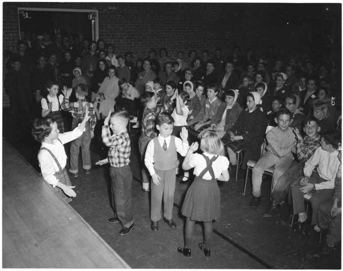 Square dancing by pupils of Grades 2 and 3 was one of the features of Regent Public School’s open house in Midland Tuesday, March 4. Other youngsters gave a demonstration of “P.T.” work as part of the evening’s entertainment.