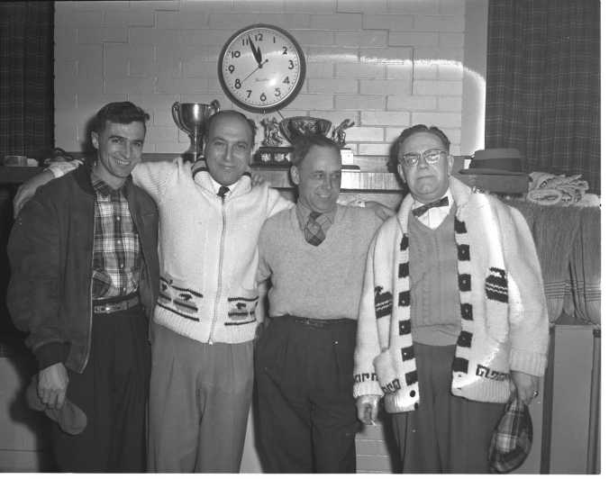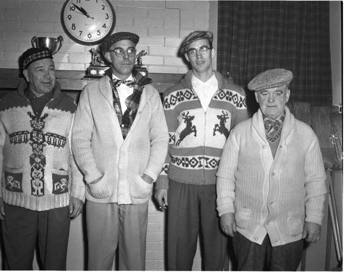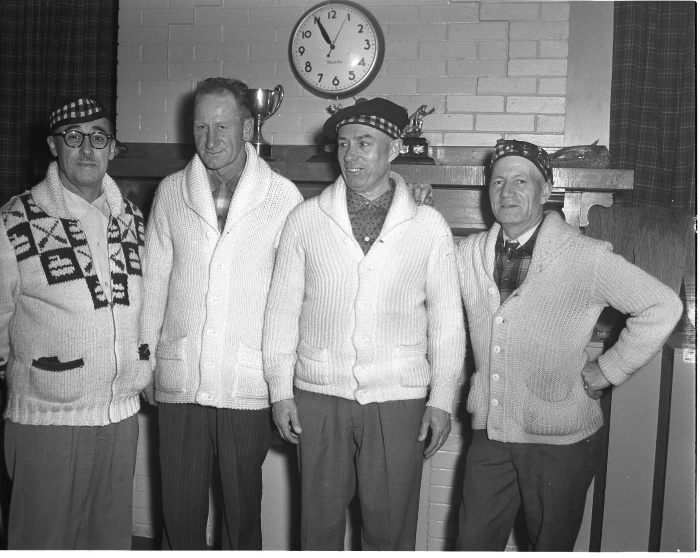 Winners in Midland Curling Club’s trophy matches run over the season are, winners of the W. E. Swales competition at Midland Curling Club this winter was Jim Thomas’ rink. Left to right are Fred Hook, Mr. Thomas, “Bud” Turnbull and Walter Wood.