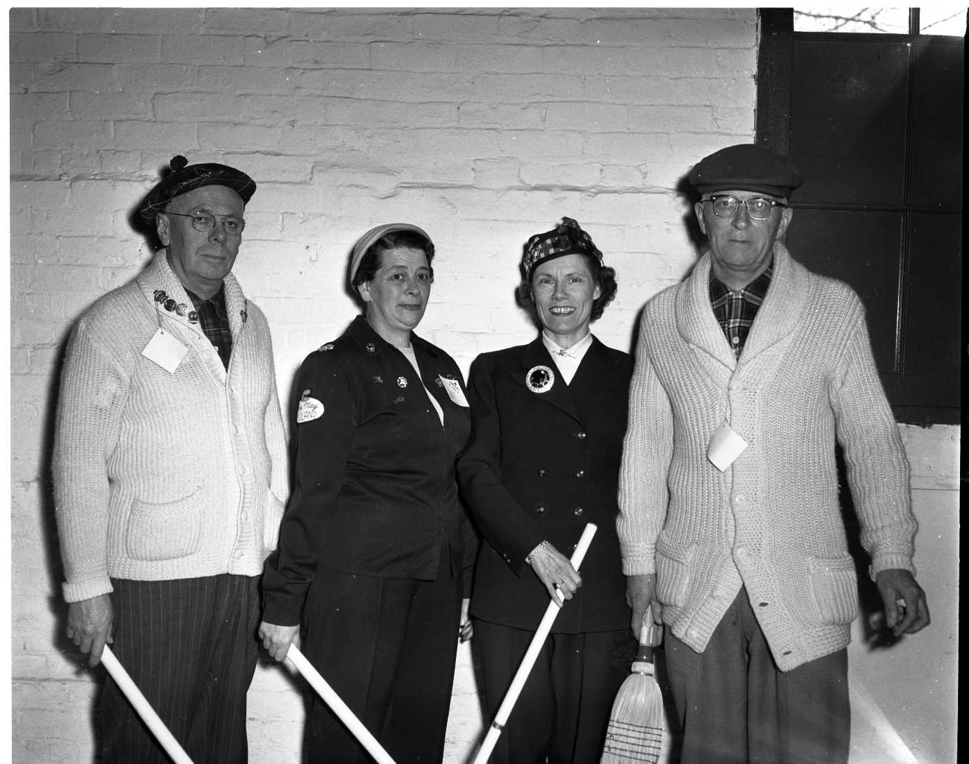 One of the most successful events of the winter season, Midland’s 9th annual mixed bonspiel was held recently. Winners were Milt Irwin’s Midland rink, seen above, who won the Orr Trophy and wrist watches for first prize. Left to right are Mr. Irwin, Mrs. J. May, Mrs. R. A. Megaw and Mr. Megaw.