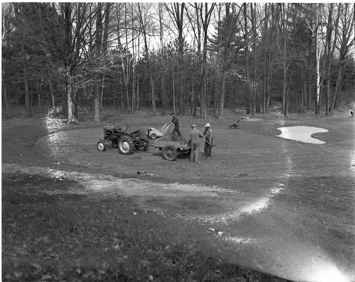 Getting ready for another season means plenty of work for the groundskeepers at Midland Golf and Country Club. Above they are tackling a perennial trouble spot, the fourth green. The recent fine weather has lured a lot of early birds to the course.