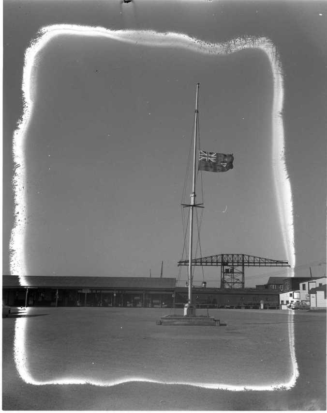There will always be a part of Capt. Ed Burke on his beloved Midland waterfront as long as this flagpole stands. (Or until the town tears it down) The flag was flying at half mast in honor of the veteran mariner, who died last week. Capt. Burke had erected the valuable pole, and enclosed it in a suitable base, at his own expense.