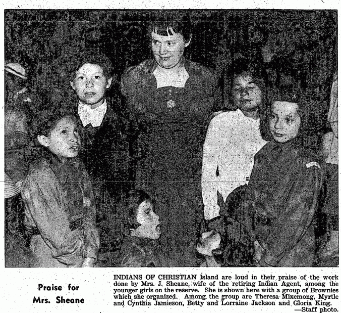 Back home in Midland after the war, Mr. Marks got a job at Ganton Dobson’s boat building establishment. Later, at the outbreak of World War II, he went to the Midland Shipyard, where he remained until age regulations forced his retirement. As a shipwright, Mr. Marks supervised the construction of the masts of all the big ships made in the yard during his years there. Boatbuilding still remains one of his chief hobbies, along with his garden and fishing. An elder of Knox Presbyterian Church, Mr. Marks was also a member of the old Sons of England Lodge when it played a prominent part in the social life of Midland. He still belongs to the lOOF. Mr. Marks meeting with Christina MacDonald came in a roundabout way, for she was a native of the Isle of Lewis, in the Outer Hebrides, off Scotland. She still retains more than a trace of her Scottish accent, too. Christina had worked as a maid in one of the big estates in Surrey. So did Arthur’s sister. It was his sister who introduced Arthur and Christina to each other when he went to the home for a visit one day. Mr. and Mrs. Marks have three children living, including sons John of Altadena, Cal., and Arthur Wm. Jr., Islington; and one daughter, Miss Margaret Marks, a teacher at Regent Public School. One son and one daughter died many years ago.