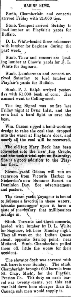 And from the June 24th, 1897 Midland Free Press, the shipping news of that week.