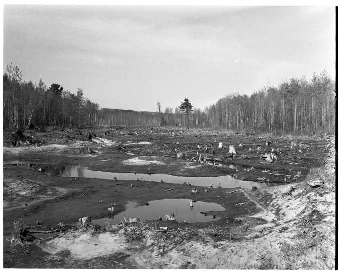 Much work has been carried out behind the scenes in Midland’s water reservoir area just north of Vindin Road. Brush and trees have been cleared over a large area, seen in these photos, which is now several feet deep with water as the new dam is in readiness. Beavers had already built their own dam about opposite the lone pine in the center background of the lower picture.