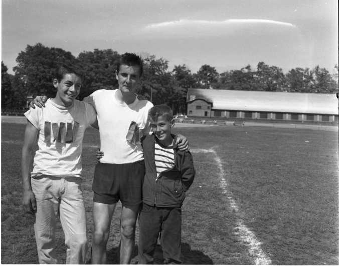 Perfect weather helped Midland Public Schools’ athletes set 11 new records last week. Winners in their various age groups are boy titlists left to right, John Jones, intermediate; Wolfgang Zingel, senior; and Barry McIlravey, junior.