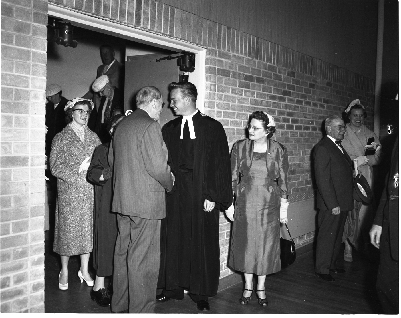 Greeting parishioner was one of the first jobs for newly-ordained Rev. Bob Jackson, who preached his first sermon since his ordination last Sunday at St. Paul’s United Church in Midland. A native Midlander, he is the son of Mr. and Mrs. Norman Jackson.
