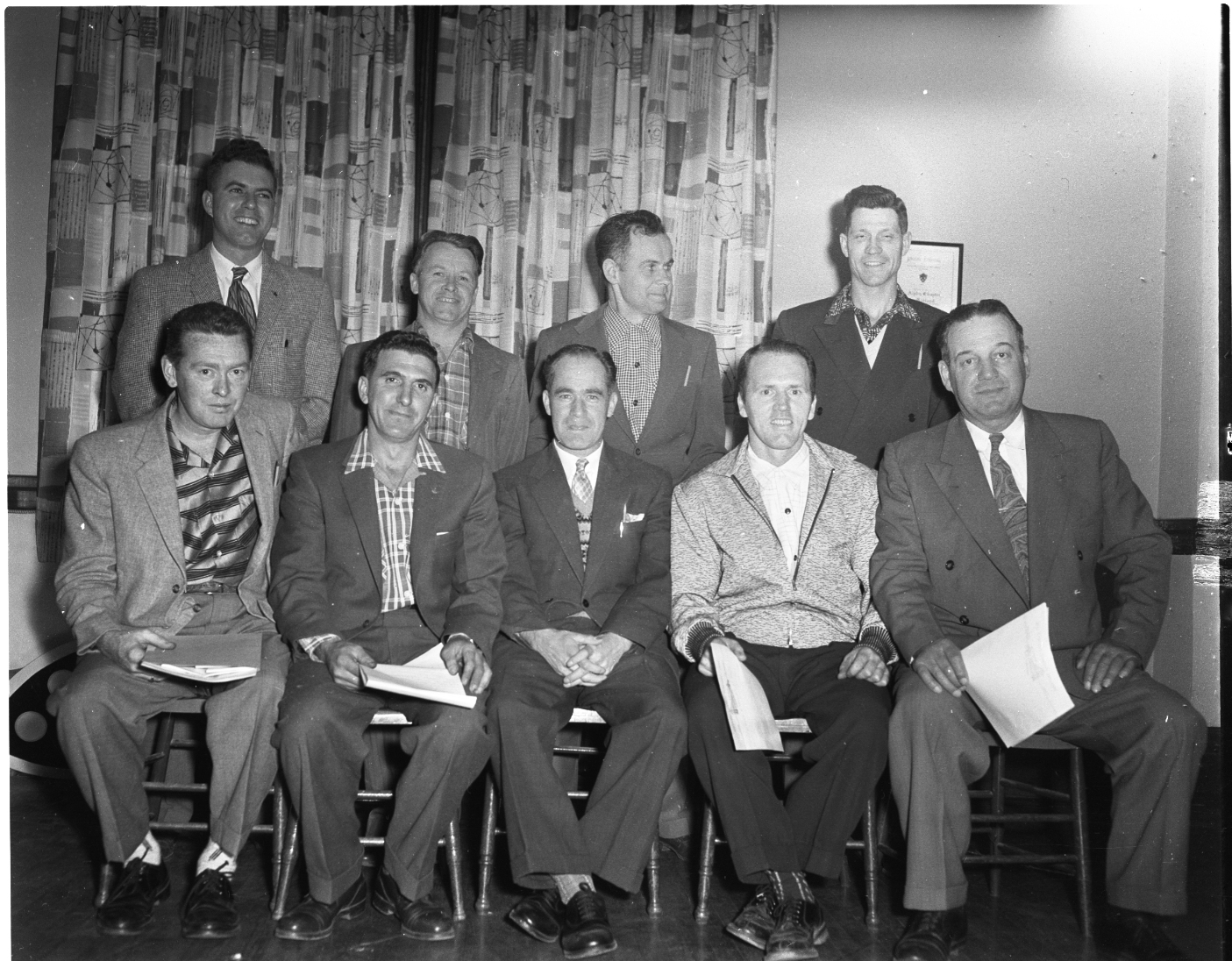 The first educational project of Midland Foremen’s Club, sponsored by the YMCA, was a course in blueprint reading. Those who completed the course are, front row, left to right; Jack Condon, Jerry Butineau; instructor Jim Murray, Richard Slanisky, Morie Whitcher; back row, Ivan McConnel, Fred Salmon, Russ Duncan and Roy Shakell. They received their certificates Monday.