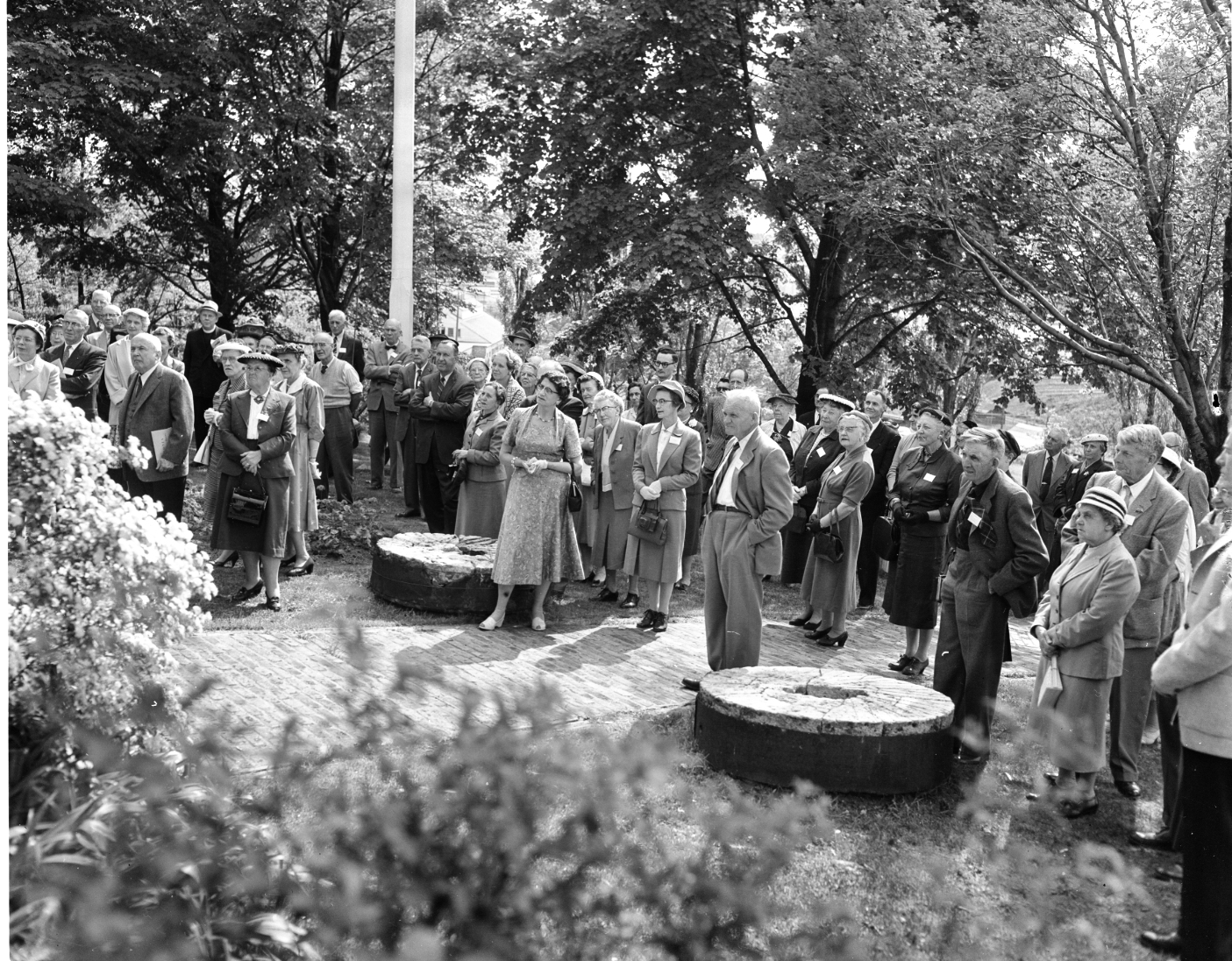 Near perfect weather, in contrast to cold, high winds later in the week, made things pleasant for delegates of the Ontario Historical Society who attended the official opening of Midland’s Huronia Museum Thursday. Many visitors were impressed by the excellence of the exhibits they found inside the building.