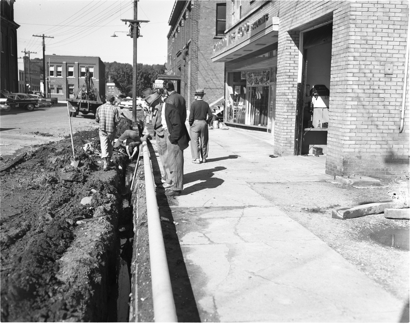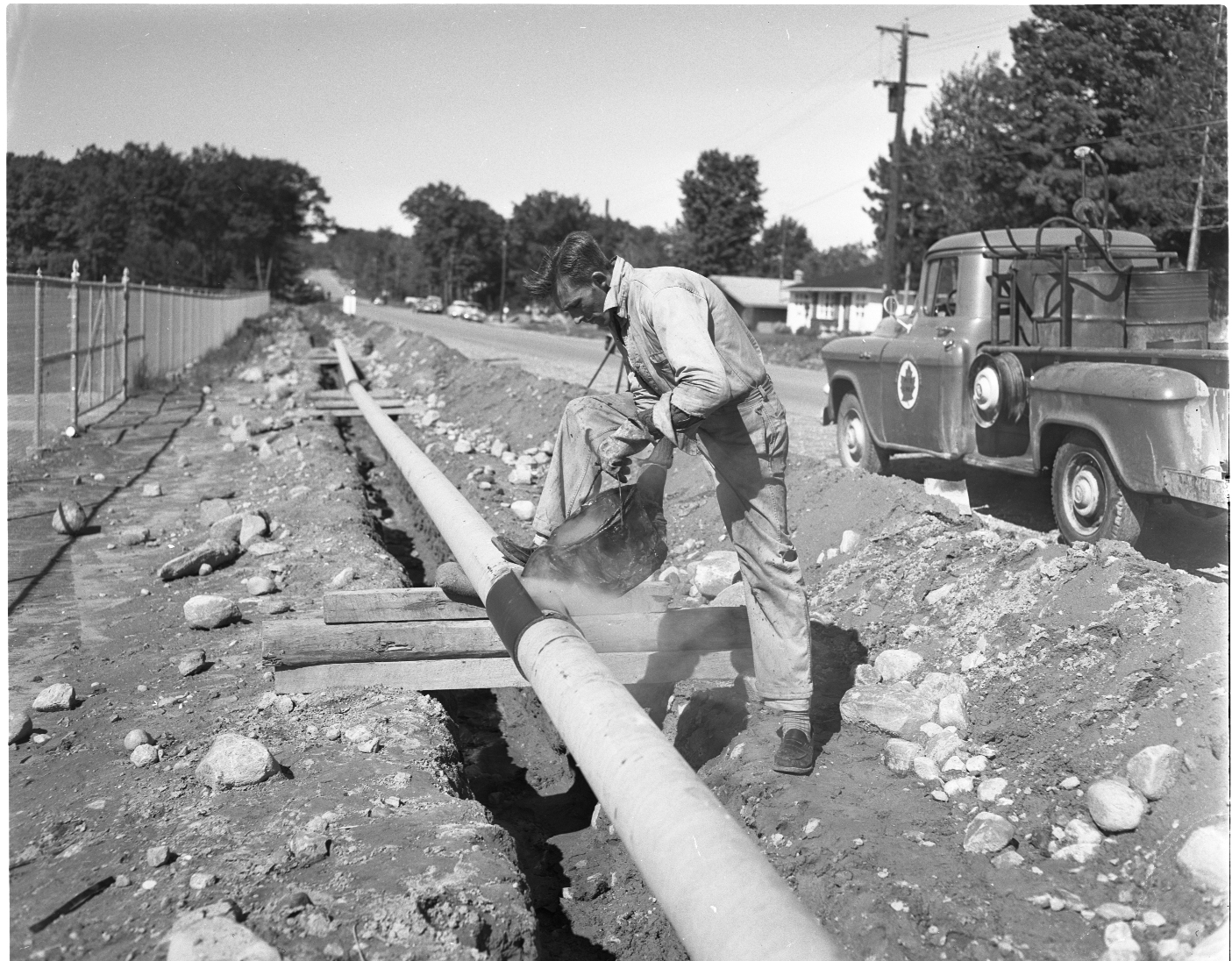 My memory of the gas pipeline installation along our street, Russell Street, was being stuck in the house watching out the window, recovering from an appendectomy. This is Bay Street E. with the Canadian Tire store on the right.