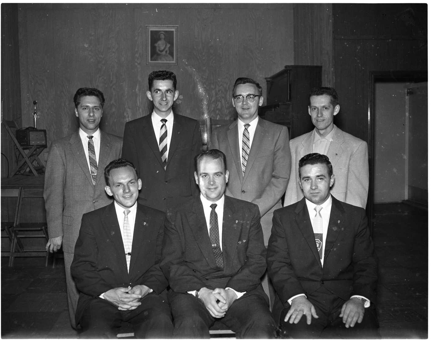 Penetang Jaycees installed new officers at ceremonies June 25 in the K of C Hall. Left to right, seated, Ted Light, retiring president, Gordon Patterson, Barrie district president; Rene Lesperance, president-elect; standing; Doug Piitz, director; Martial Dupuis, treasurer; Glen Smith, 2nd, vice-president; Alvin Gravelle, director.